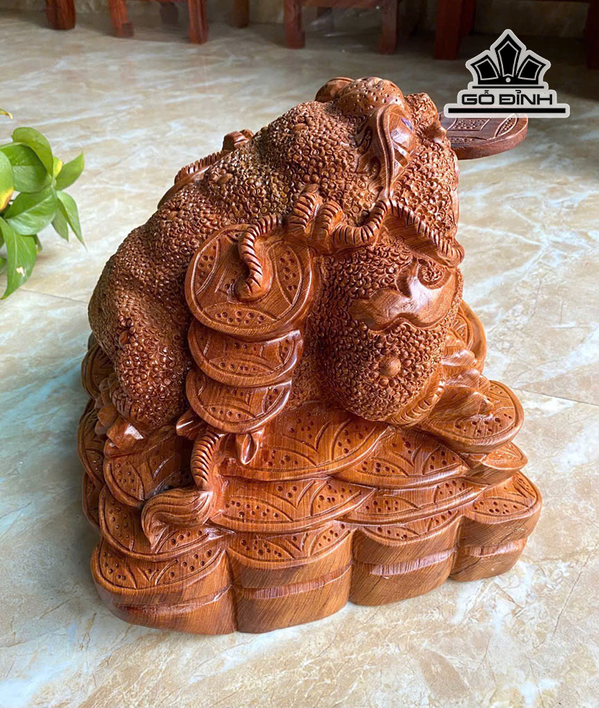 Tượng Cóc Ngậm Tiền Gỗ Ngọc Am Cao 27 Ngang 31 Sâu 28 (cm) - 7,5kg