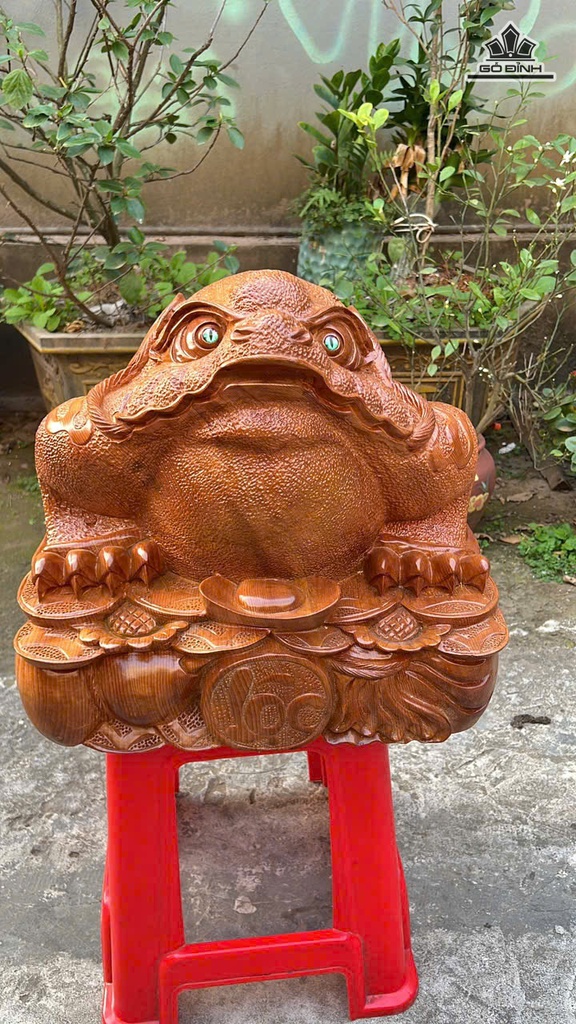 Tượng Cóc Ngậm Tiền Gỗ Ngọc Am Cao 38 Ngang 43 Sâu 40 (cm)