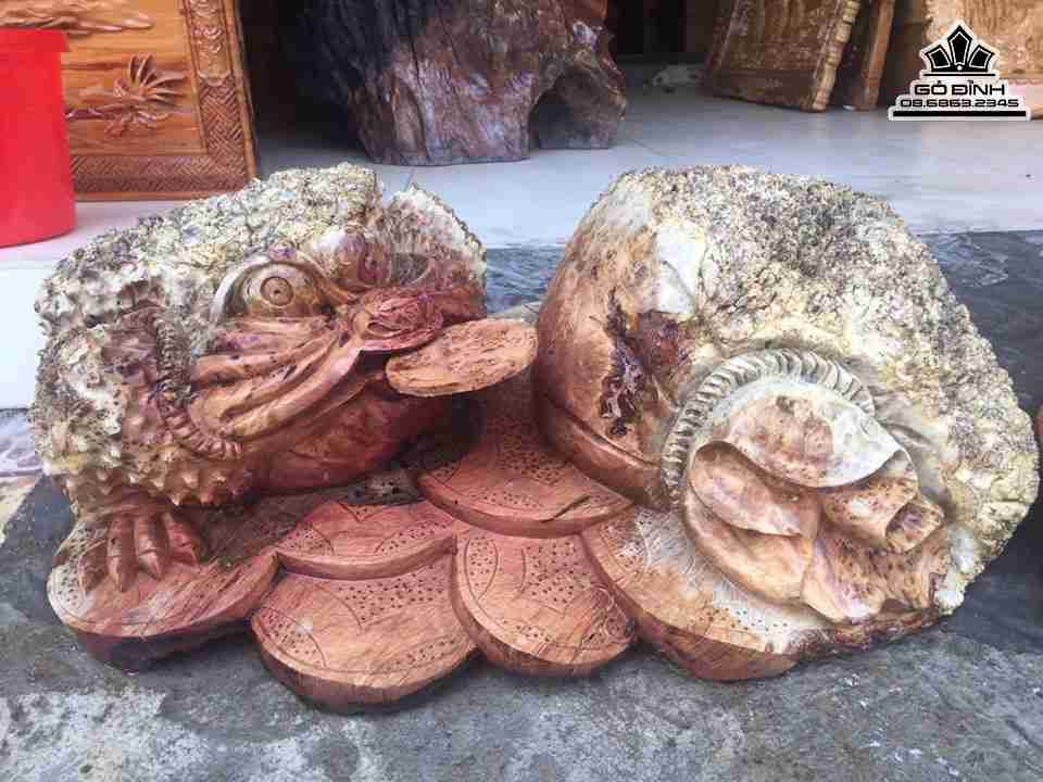Tượng Cóc Ngậm Tiền Gỗ Nu Bằng Lăng Ngang 65 Sâu 35 Cao 25 (cm)
