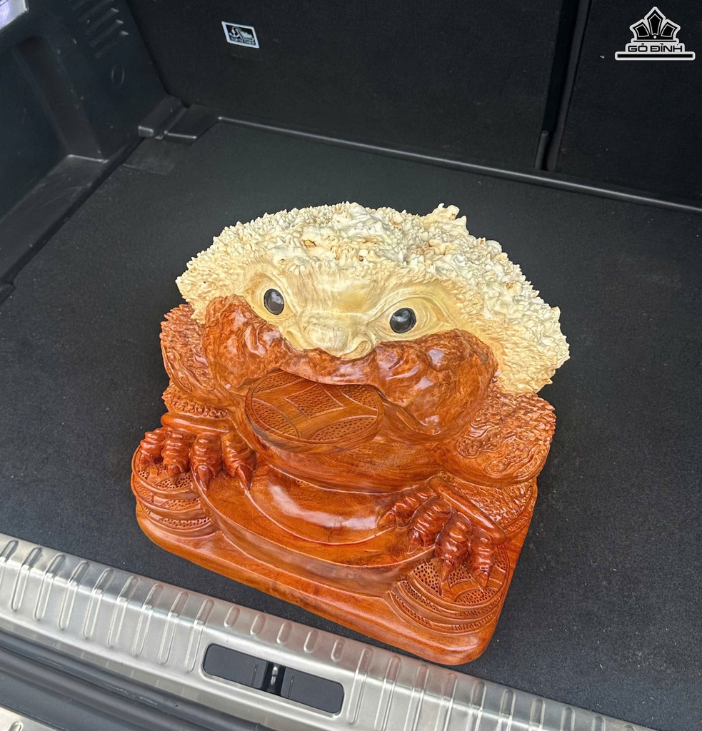 Tượng Cóc Ngậm Tiền Gỗ Nu Hương Cao 38 Ngang 38 Sâu 36 (cm)