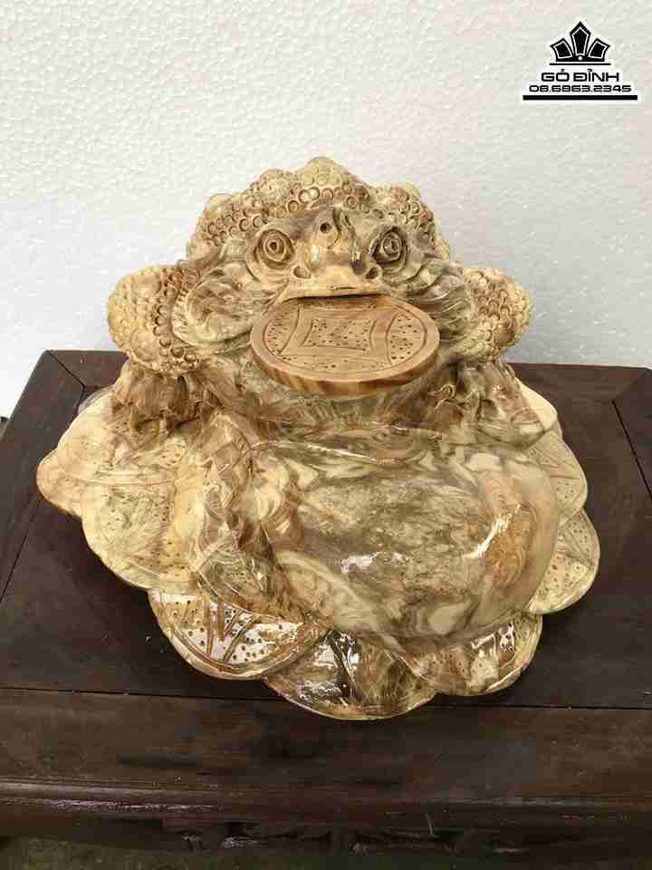 Tượng Cóc Ngậm Tiền Gỗ Nu Nghiến Cao 22 Ngang 33 Sâu 33 (cm)
