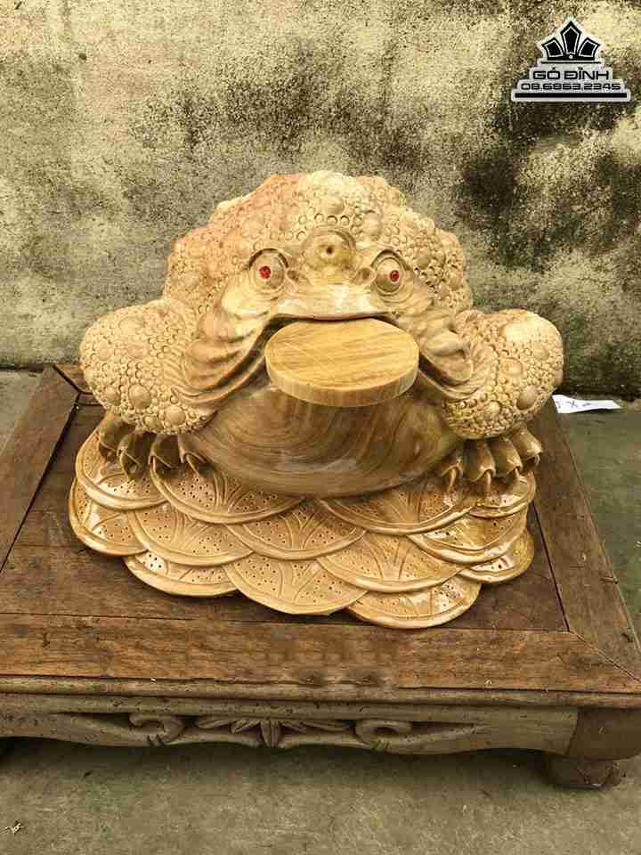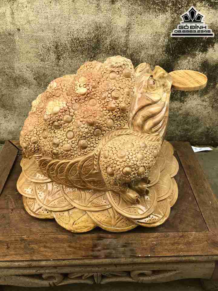Tượng Cóc Ngậm Tiền Gỗ Nu Nghiến Cao 24 Ngang 33 Sâu 33 (cm)