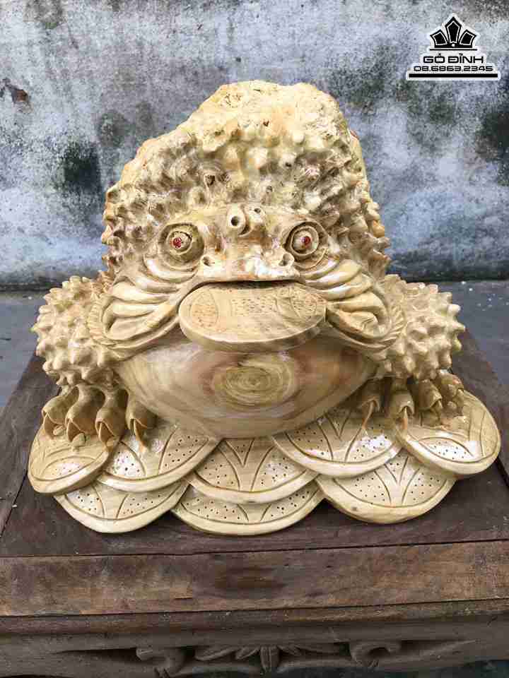 Tượng Cóc Ngậm Tiền Gỗ Nu Nghiến Cao 30 Ngang 39 Sâu 30 (cm)