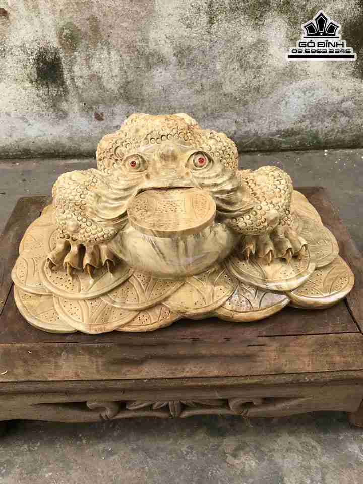 Tượng Cóc Ngậm Tiền Gỗ Nu Nghiến Cao 19 Ngang 40 Sâu 28 (cm)
