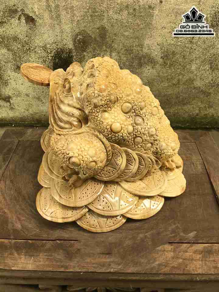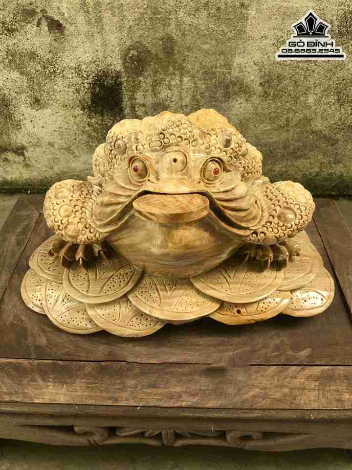 Tượng Cóc Ngậm Tiền Gỗ Nu Nghiến Cao 21 Ngang 36 Sâu 27 (cm)