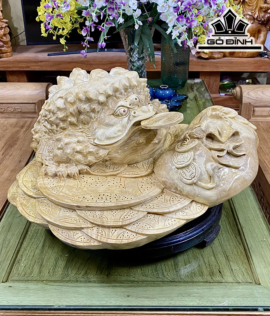 Tượng Cóc Ngậm Tiền Gỗ Nu Nghiến Cao 22 Ngang 53 Sâu 48 (cm)
