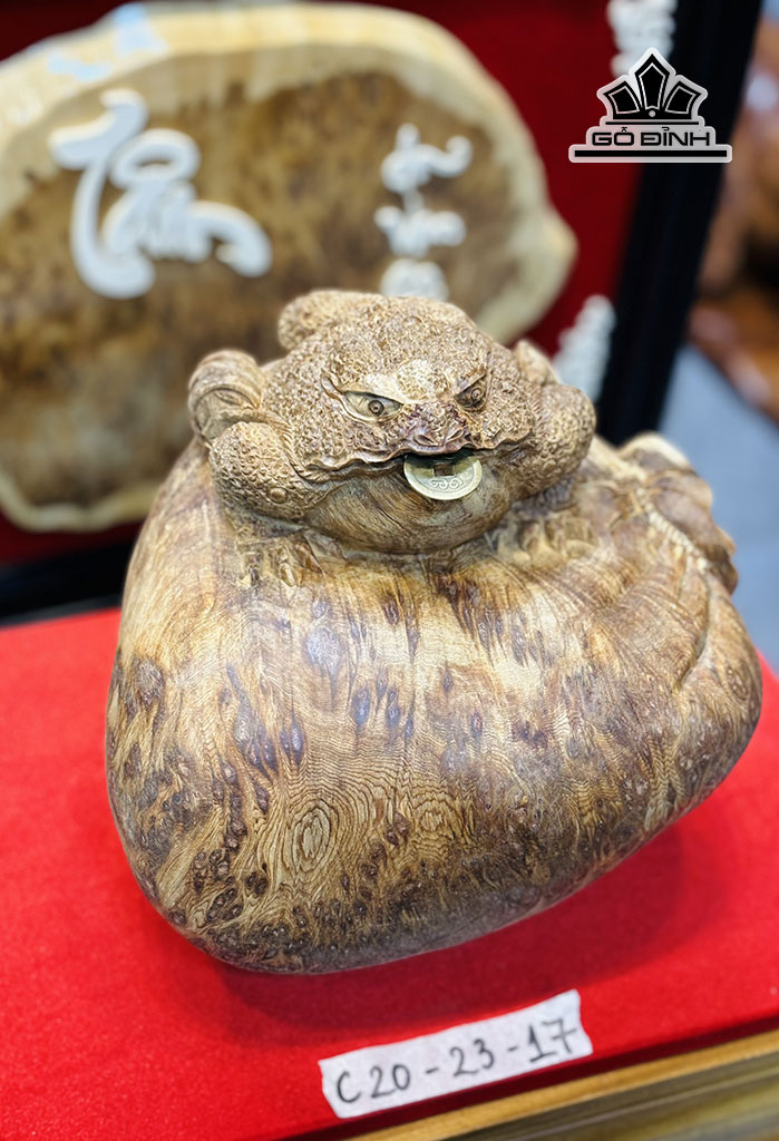 Tượng Cóc Ngậm Tiền Gỗ Nu Ngọc Am Cao 20 Ngang 23 Sâu 17 (cm)