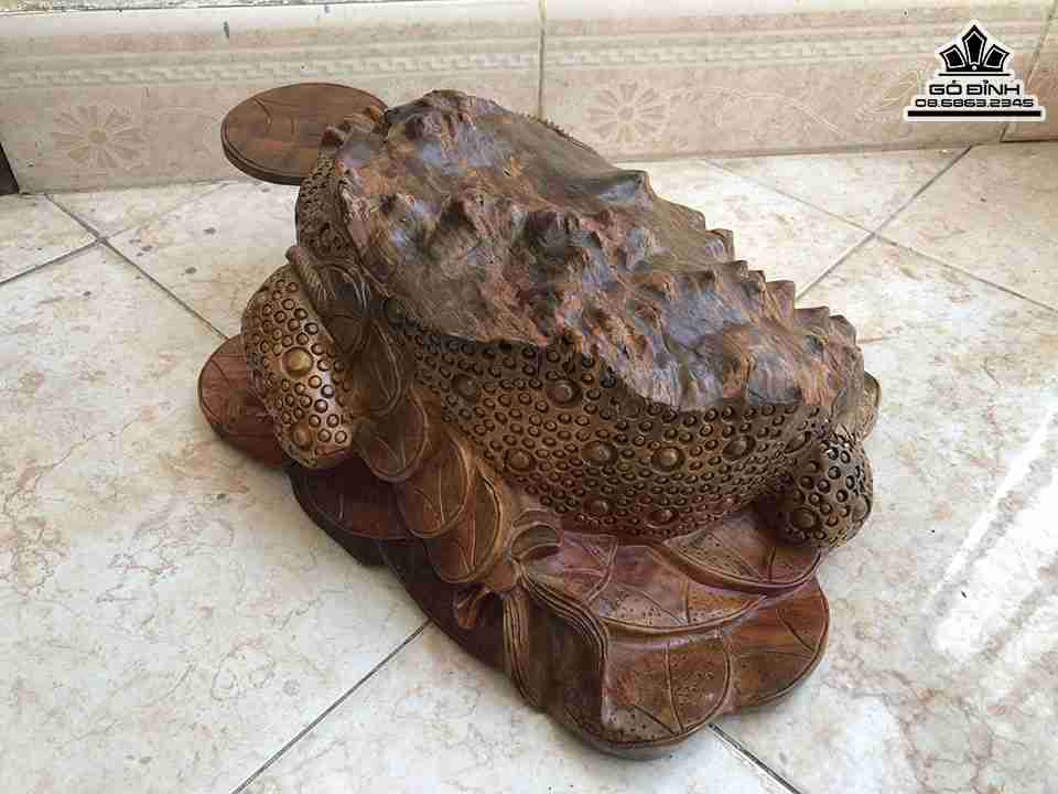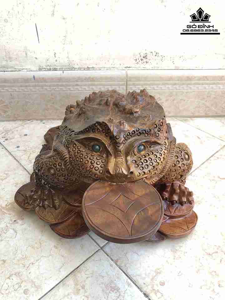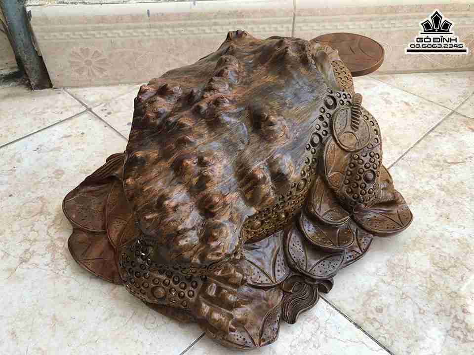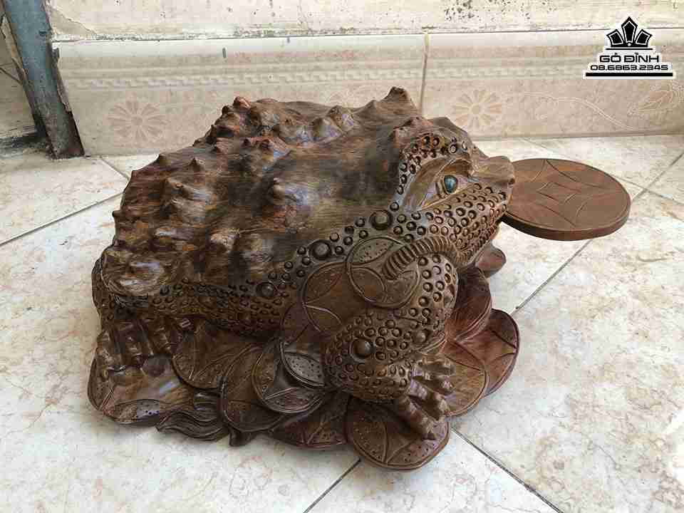 Tượng Cóc Ngậm Tiền Gỗ Nu Xá Xị ( Gù Hương ) Rộng 31 Dài 36 Cao 18 (cm)