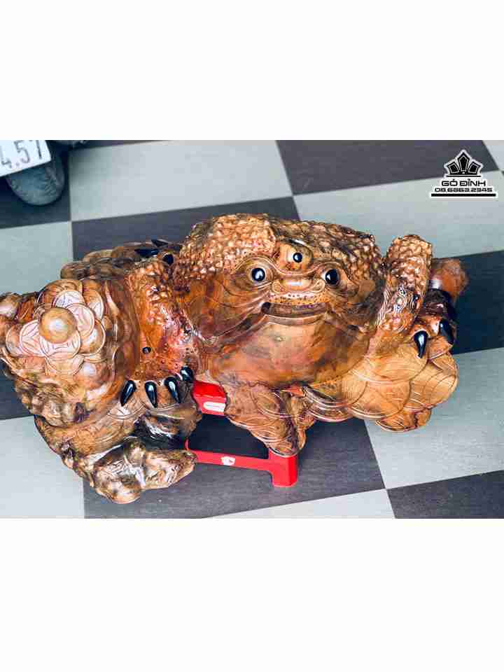 Tượng Cóc Ngậm Tiền Gỗ Nu Xá Xị ( Gù Hương ) Cao 33 Ngang 90 Sâu 55 (cm)
