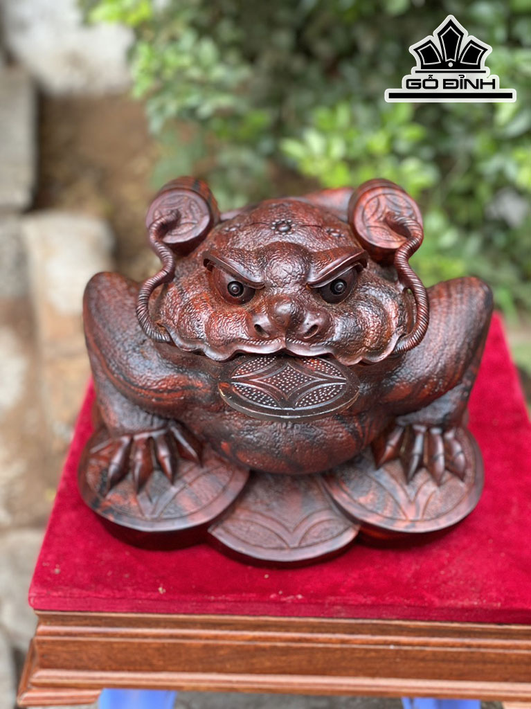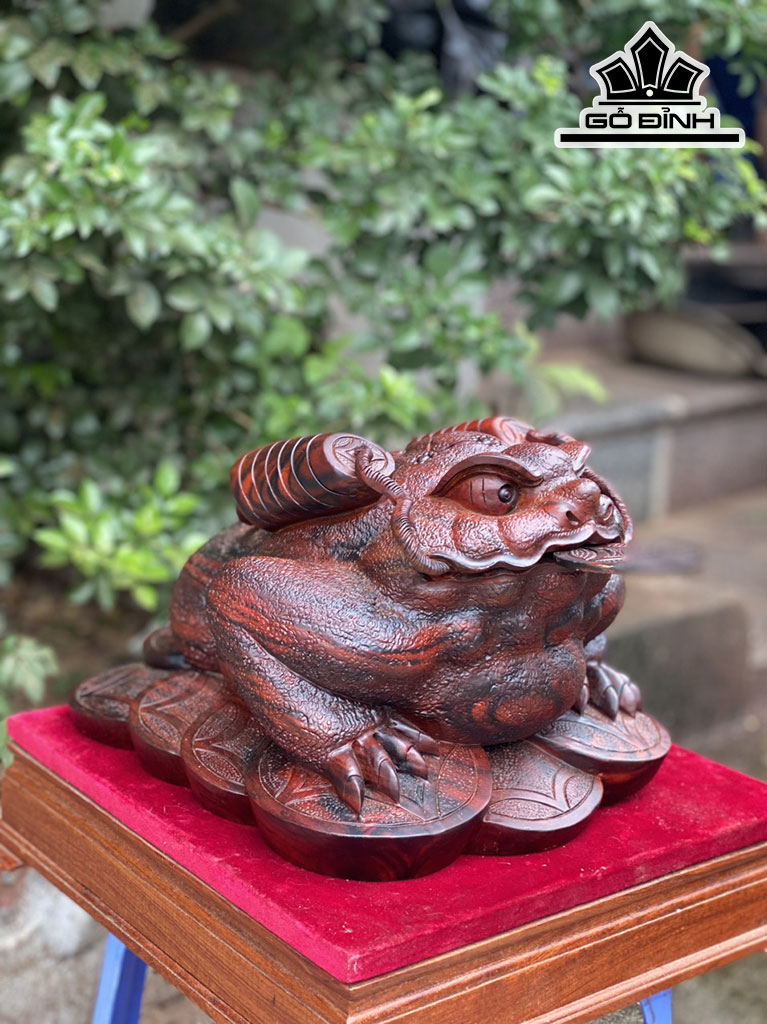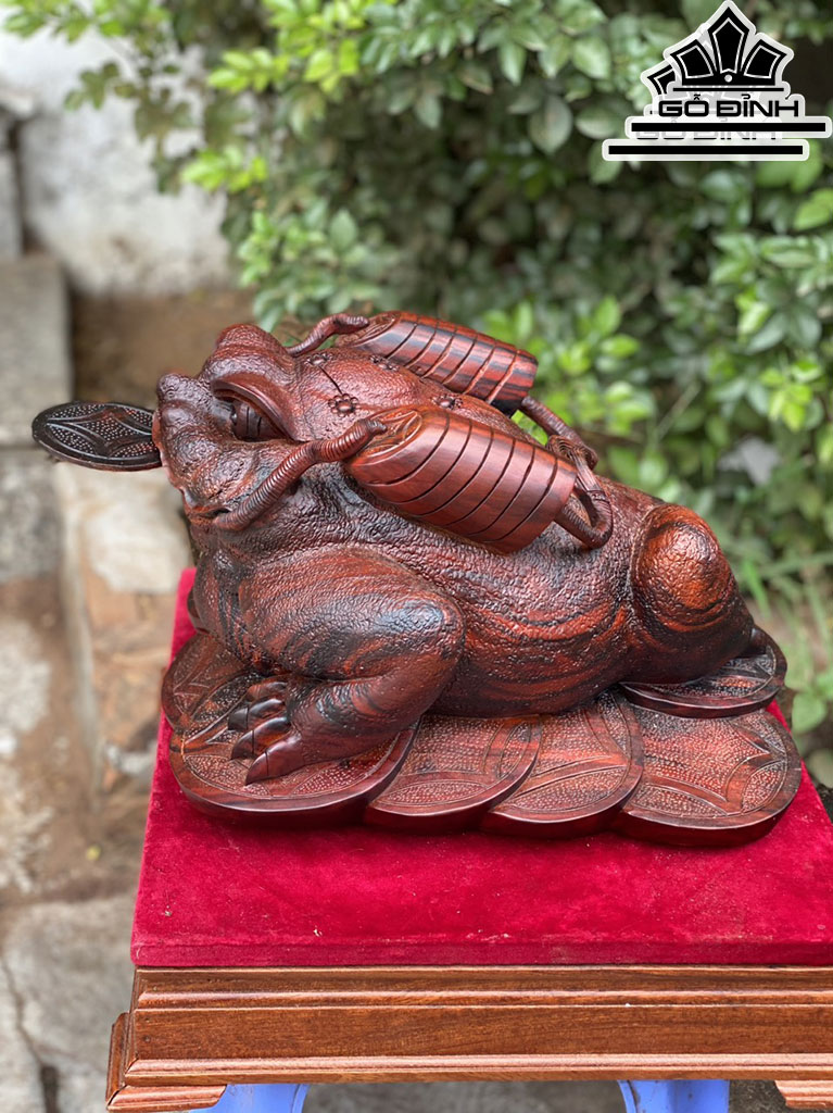 Tượng Cóc Ngậm Tiền Gỗ Trắc Cao 20 Ngang 25 Sâu 31 (cm)