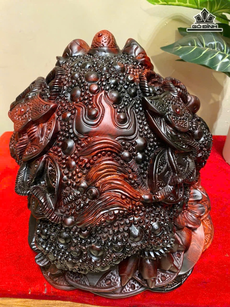 Tượng Cóc Ngậm Tiền Gỗ Trắc Cao 25 Ngang 26 Sâu 28 (cm)