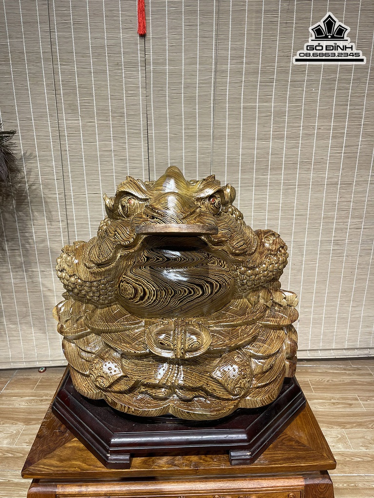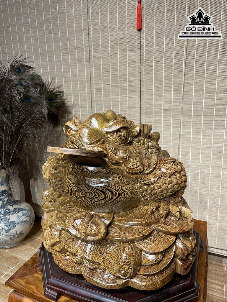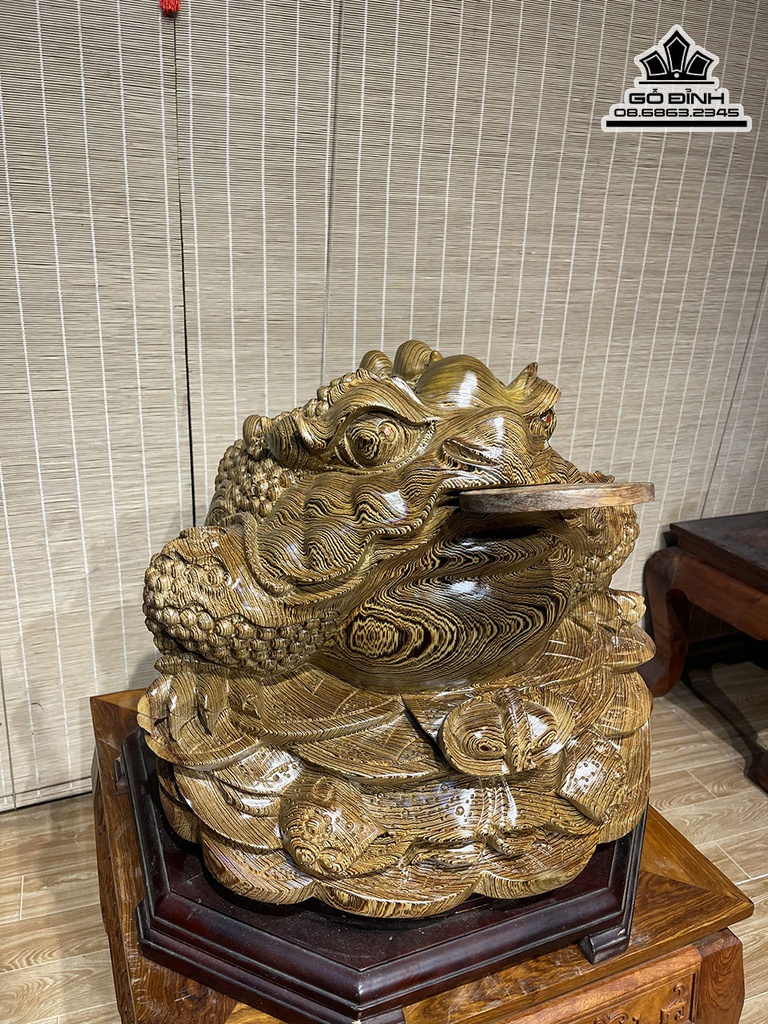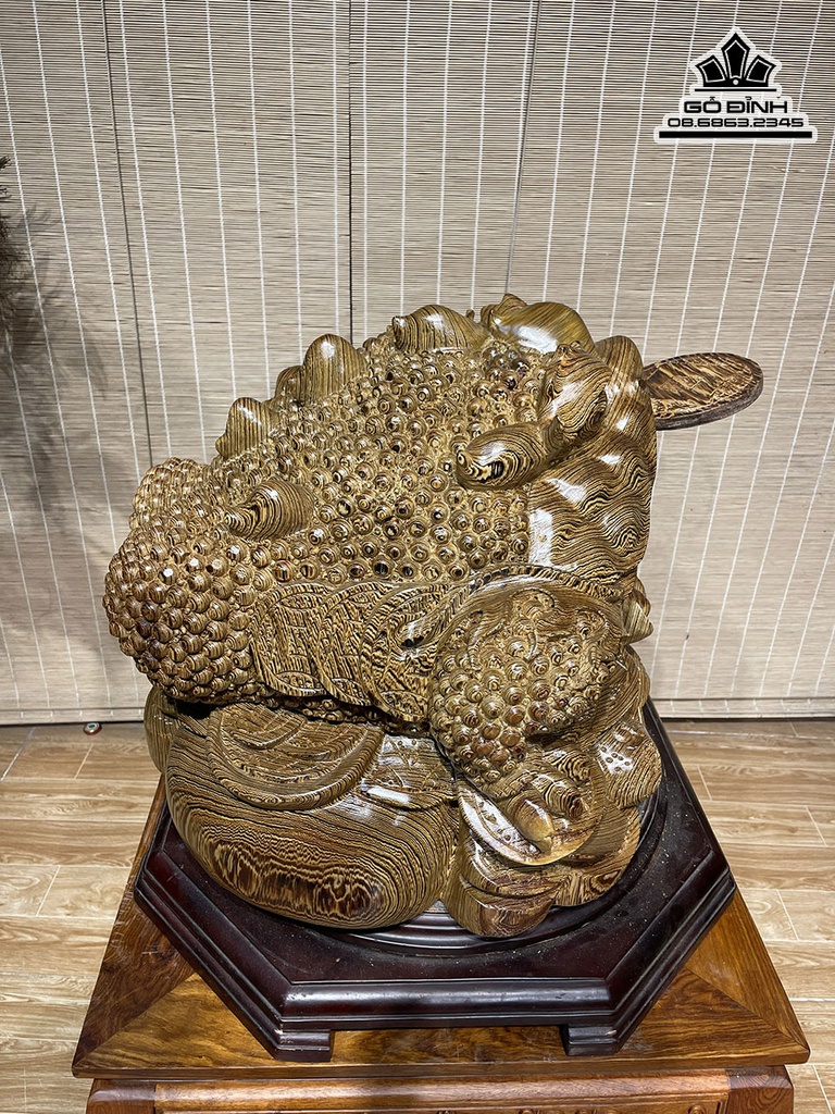 Tượng Cóc Ngồi Bao Tiền Gỗ Mun Đuôi Công Cao 40 Ngang 48 Sâu 45 (cm)