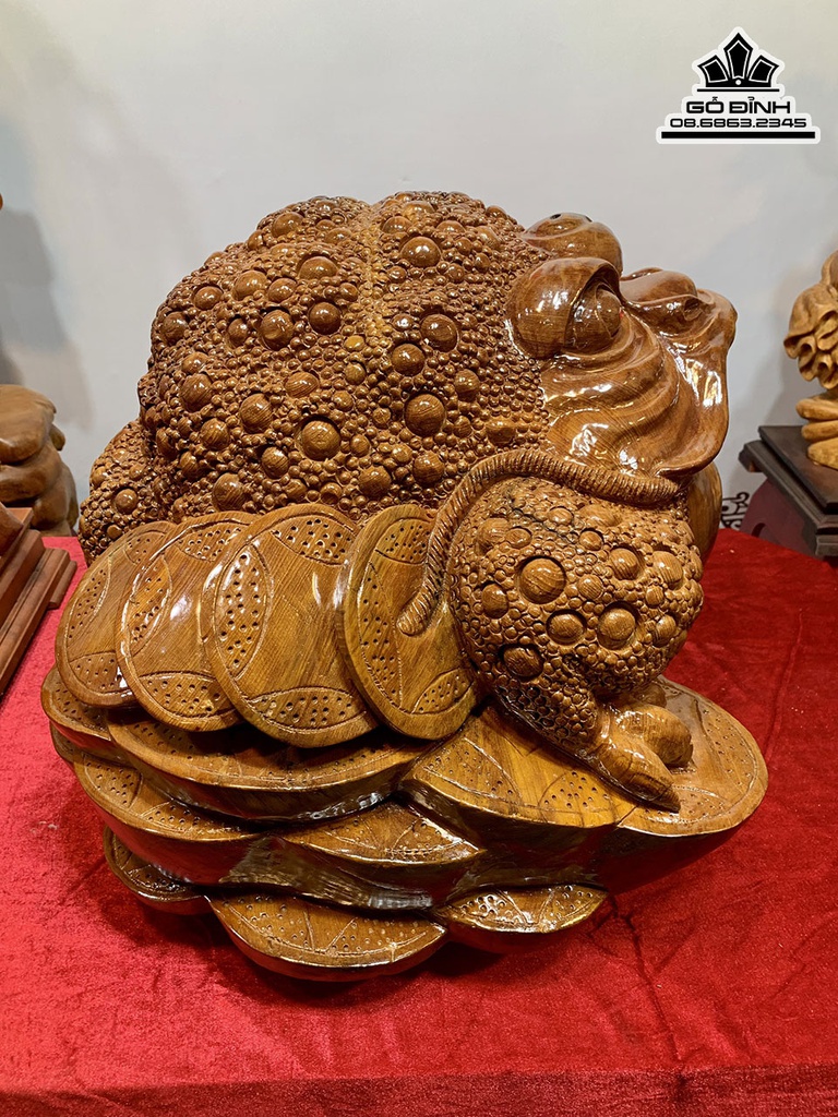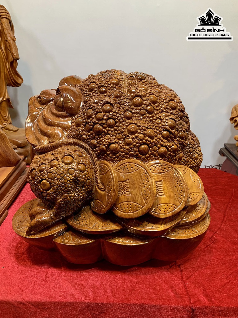 Tượng Cóc Tài Lộc Gỗ Ngọc Am Cao 43 Ngang 51 Sâu 36 (cm)