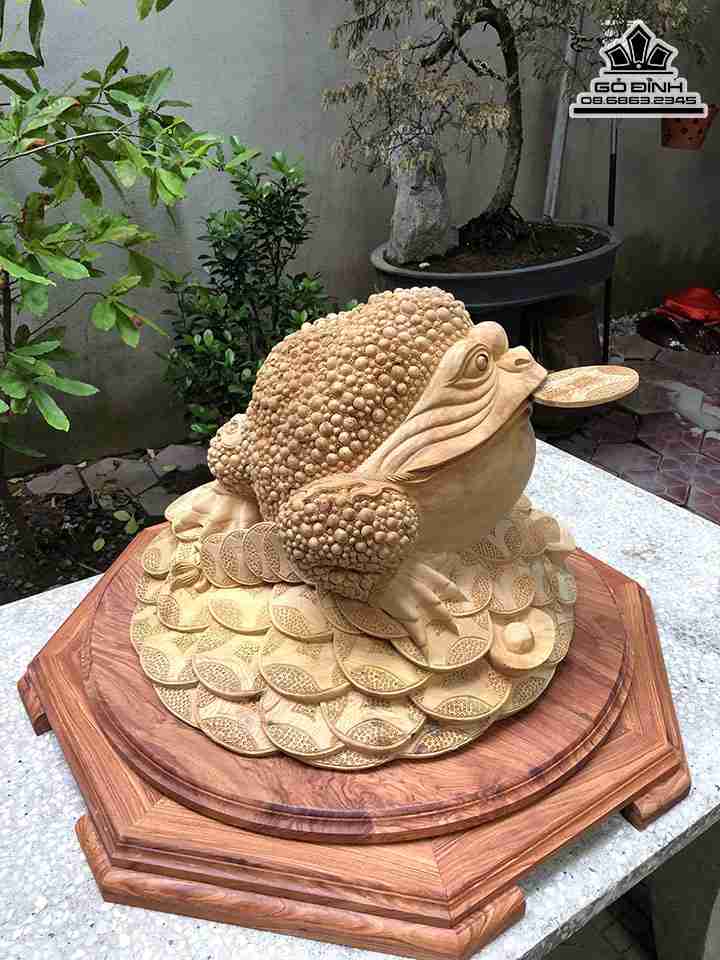 Tượng Cóc Thiềm Thừ Gỗ Ngọc Am Cao 35 Ngang 50 Sâu 50 (cm)