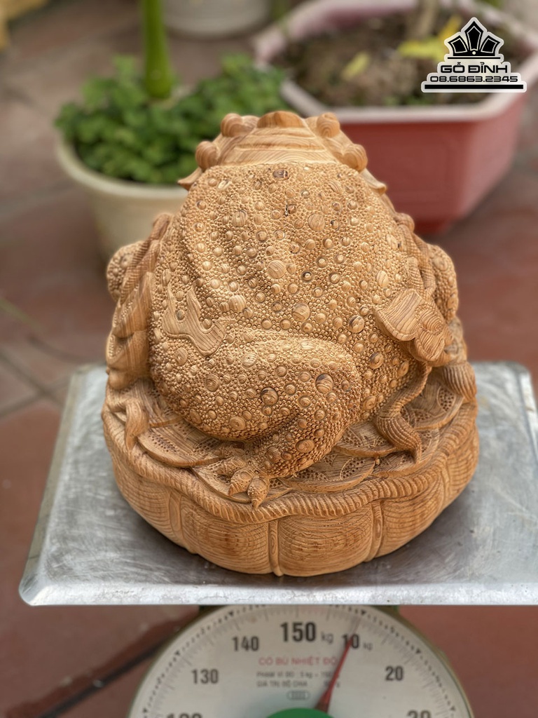 Tượng Cóc Thiềm Thừ Gỗ Ngọc Am Cao 32 Ngang 33 Sâu 33 (cm)