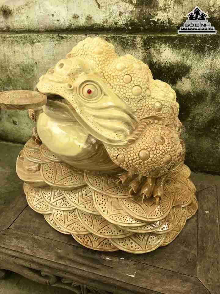 Tượng Cóc Thiềm Thừ Gỗ Nu Nghiến Cao 43 Ngang 36 Sâu 38 (cm)