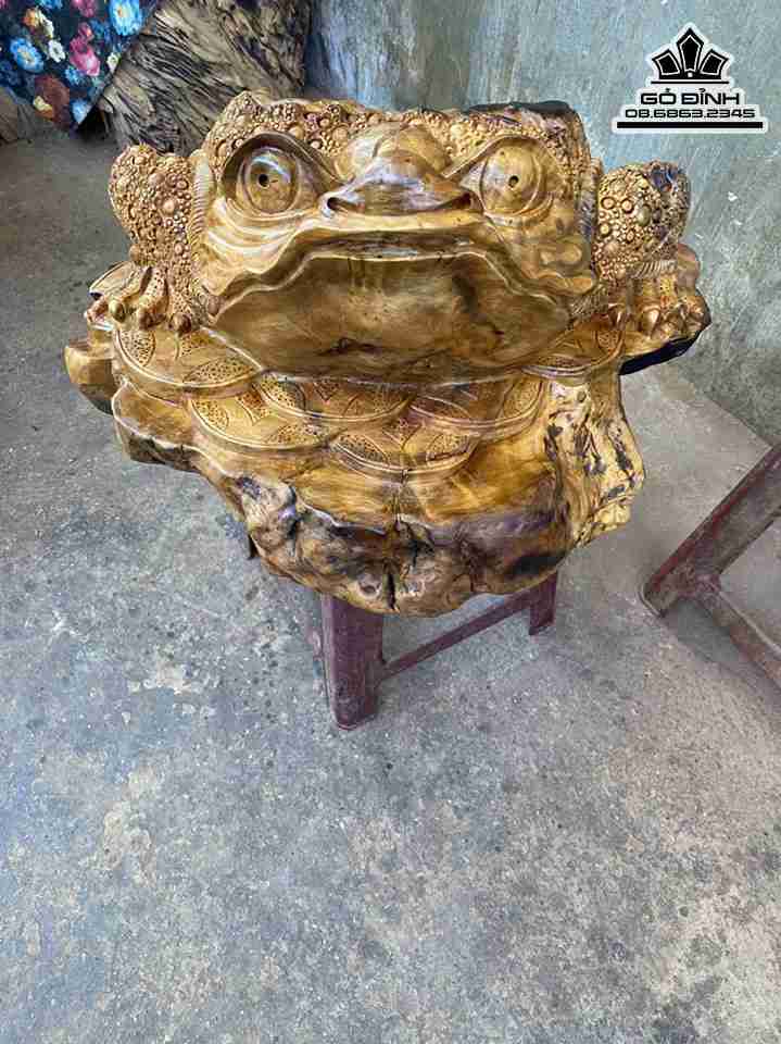 Tượng Cóc Thiềm Thừ Gỗ Nu Xá Xị ( Gù Hương) Cao 30 Ngang 65 Sâu 50 (cm)