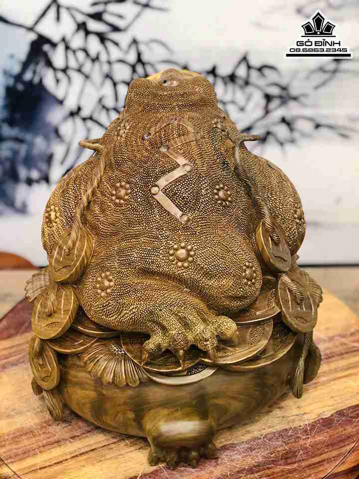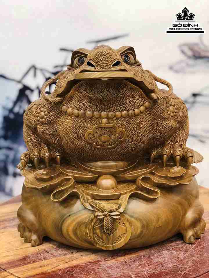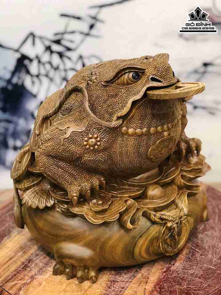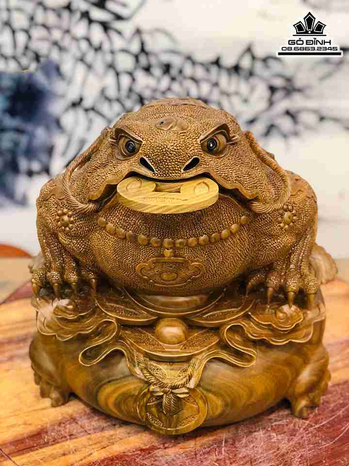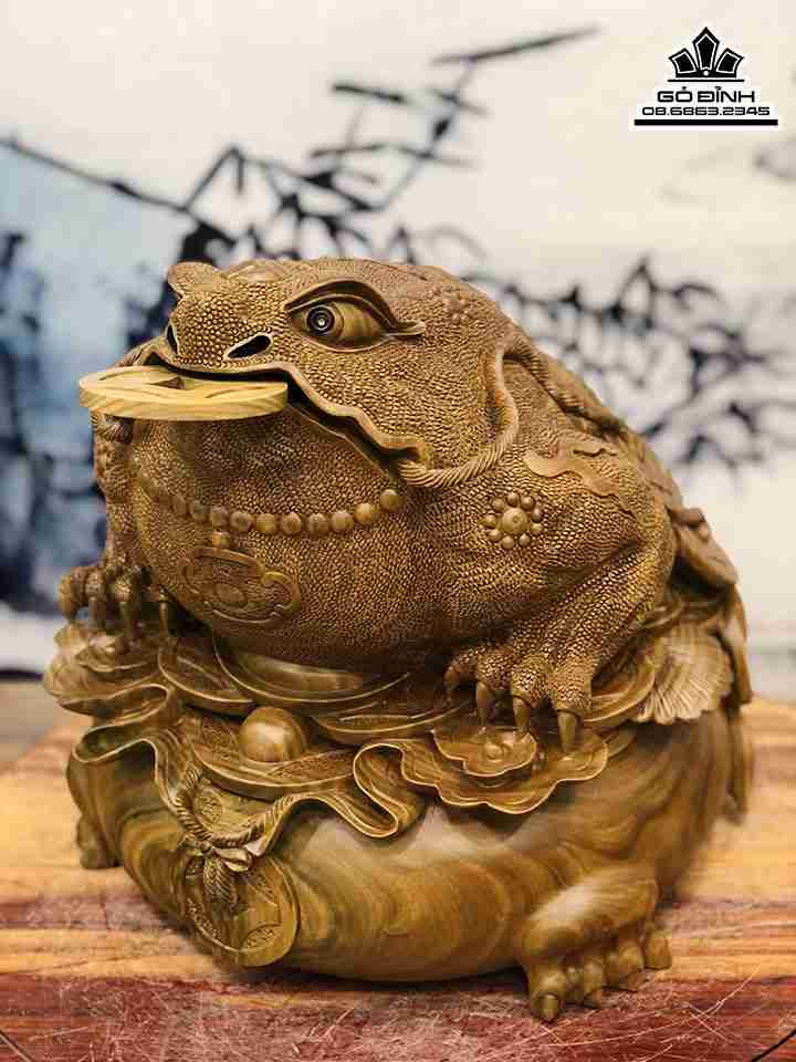 Tượng Cóc Thiềm Thừ Gỗ Trắc Xanh Cao 38 Ngang 38 Sâu 37 (cm)
