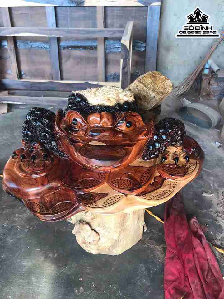 Tượng Cóc Thiềm Thừ Ngậm Tiền Gỗ Cẩm Ngang 60 Sâu 45 Cao 30 (cm)