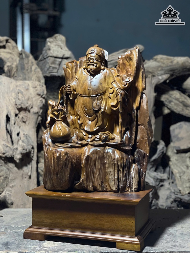 Tượng Cụ Thương Gia Gỗ Bách Xanh Cao 43 Ngang 33 Sâu 22 (cm)