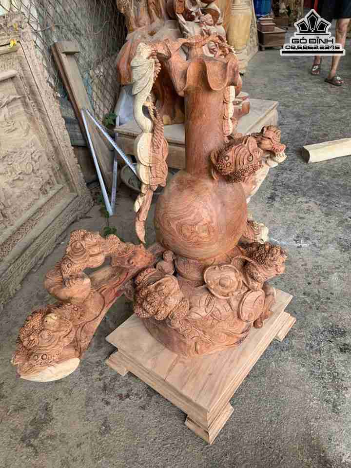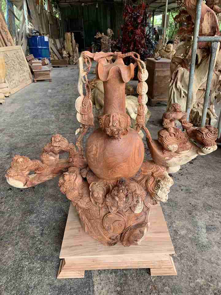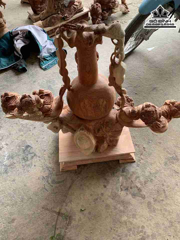 Tượng Cửu Cóc Chấn Bình Tài Lộc Gỗ Hương Cao 84 Ngang 90 Sâu 40 (cm)
