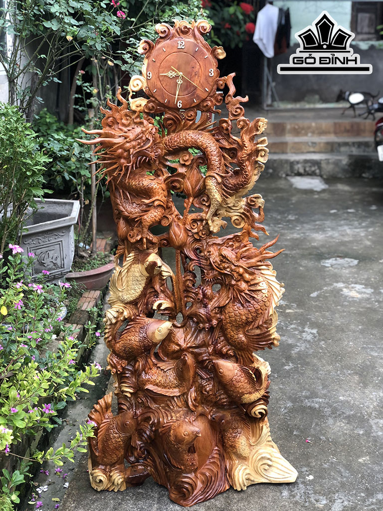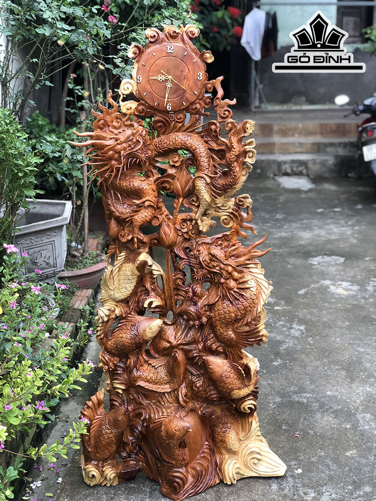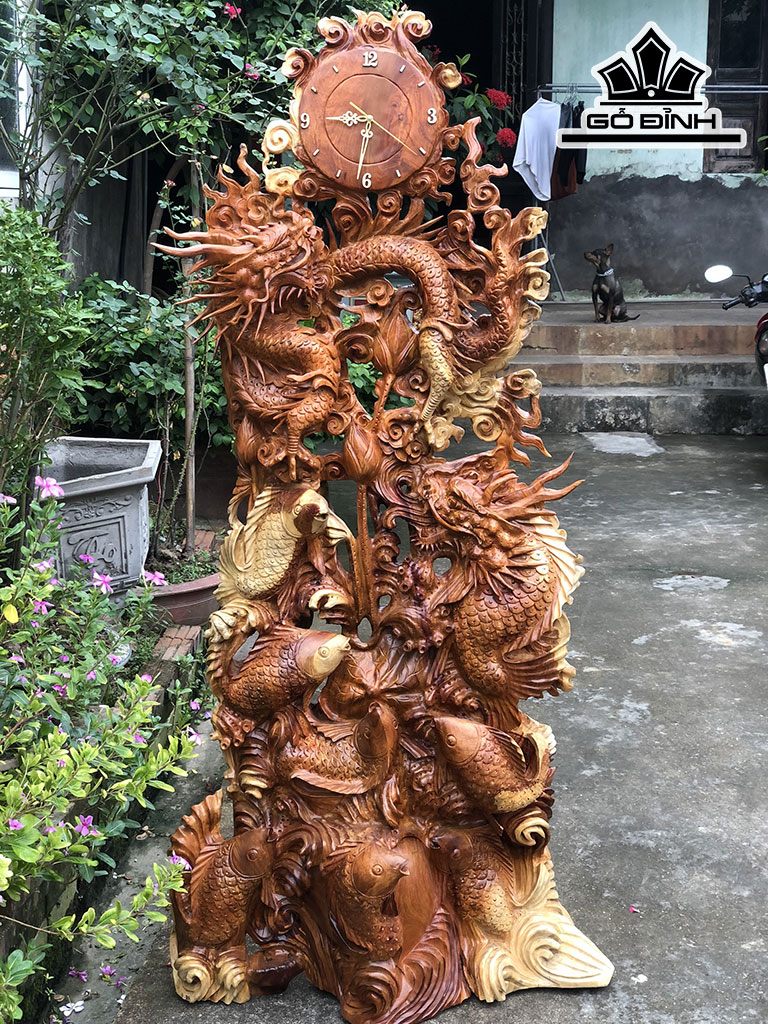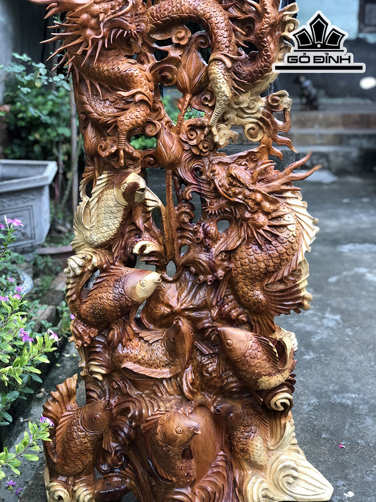 Tượng Cửu Ngư Hóa Rồng Gỗ Hương Cao 164 Ngang 80 Sâu 33 (cm)