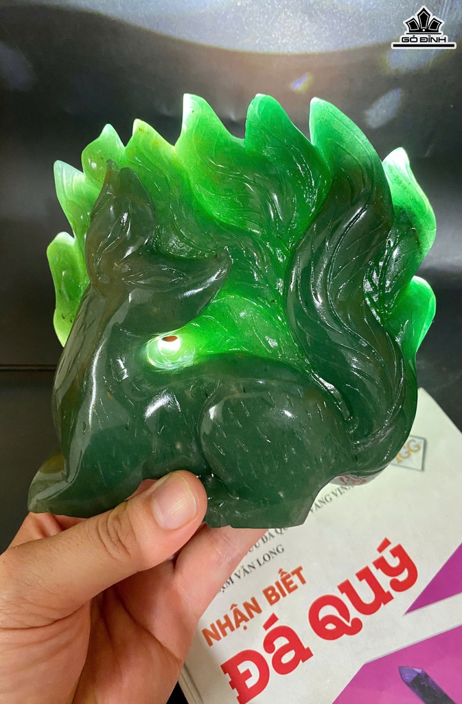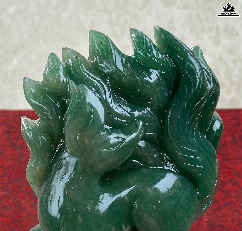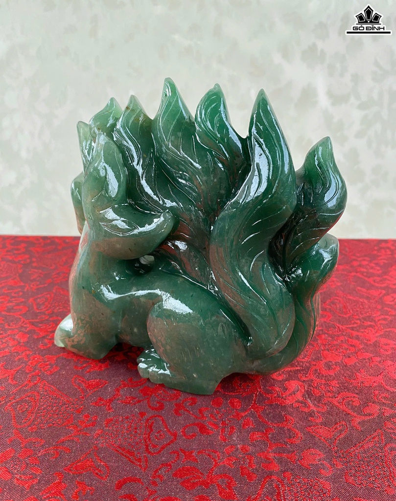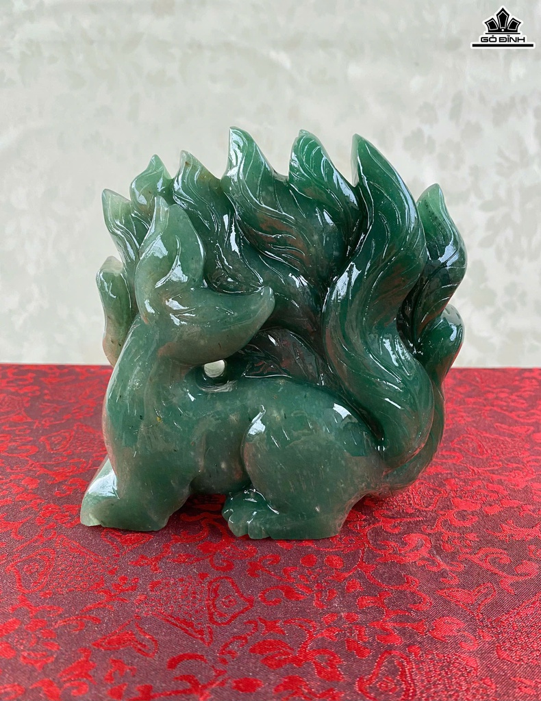 Tượng Cửu Vỹ Hồ Ly Ngọc Đông Linh Aventurine Cao 13 Ngang 12,5 Sâu 4,2 (cm) - 0,95kg