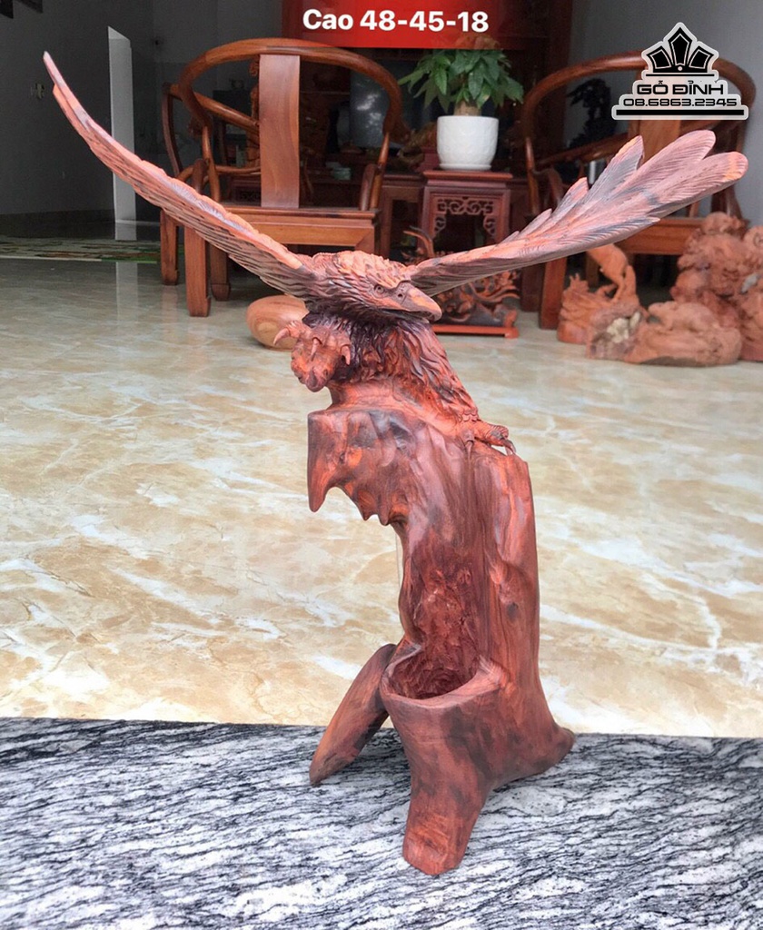 Tượng Đại Bàng Gỗ Trắc Cao 48 Ngang 45 Sâu 18 (cm)