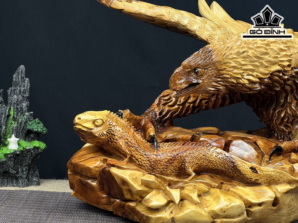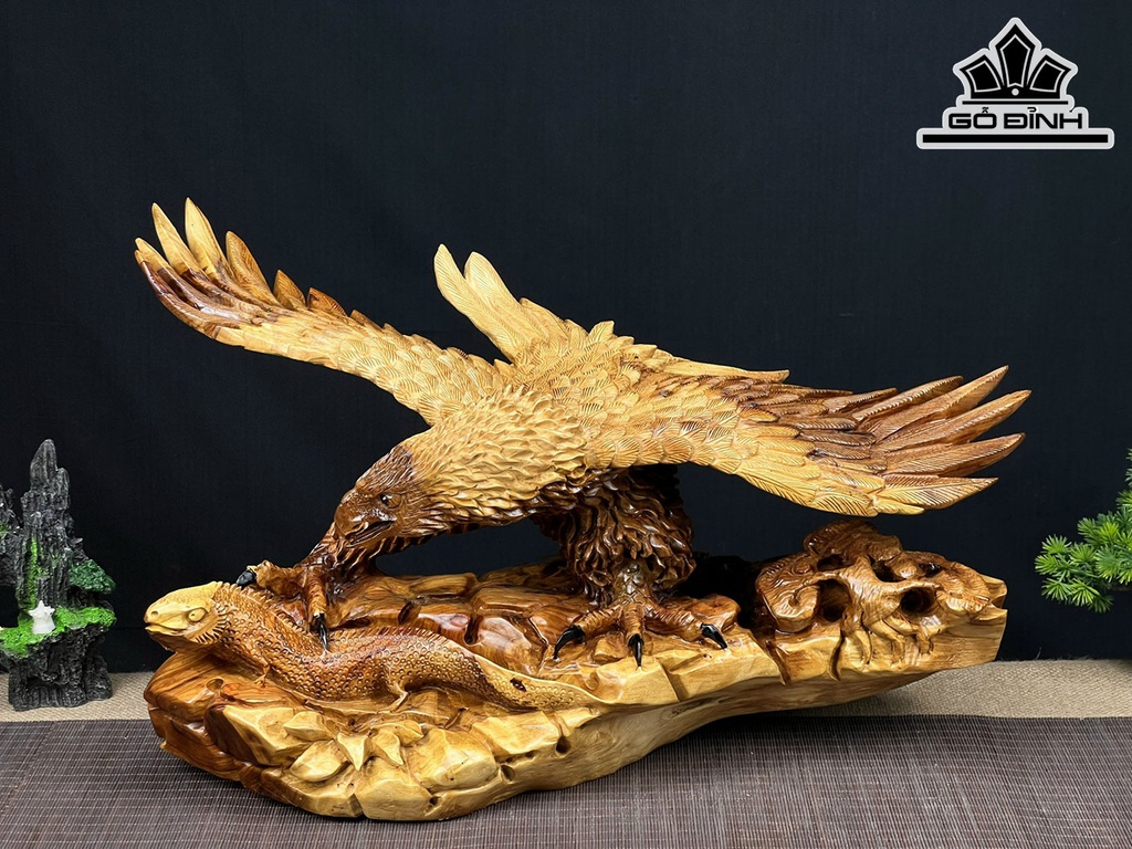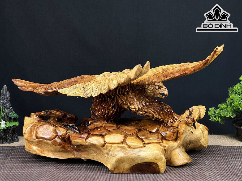 Tượng Đại Bàng Săn Mồi Gỗ Hương Cao 32 Ngang 52 Sâu 30 (cm)
