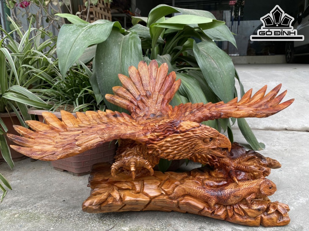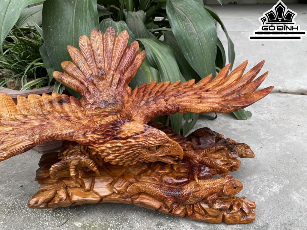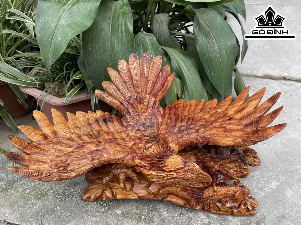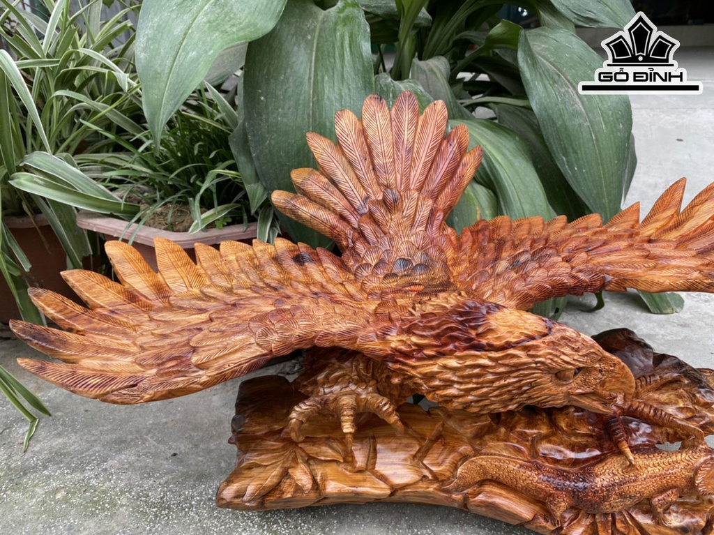 Tượng Đại Bàng Săn Mồi Gỗ Hương Cao 36 Ngang 66 Sâu 26 (cm)