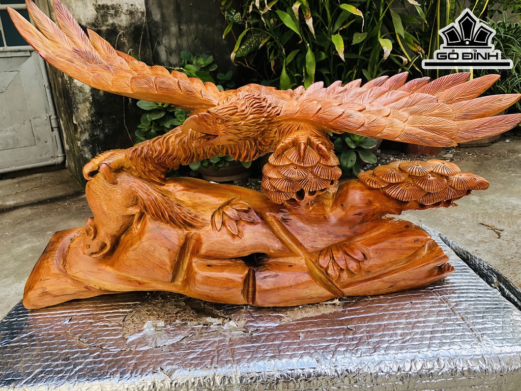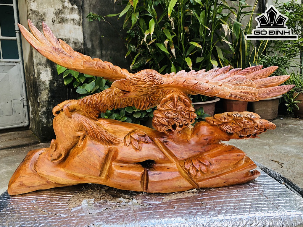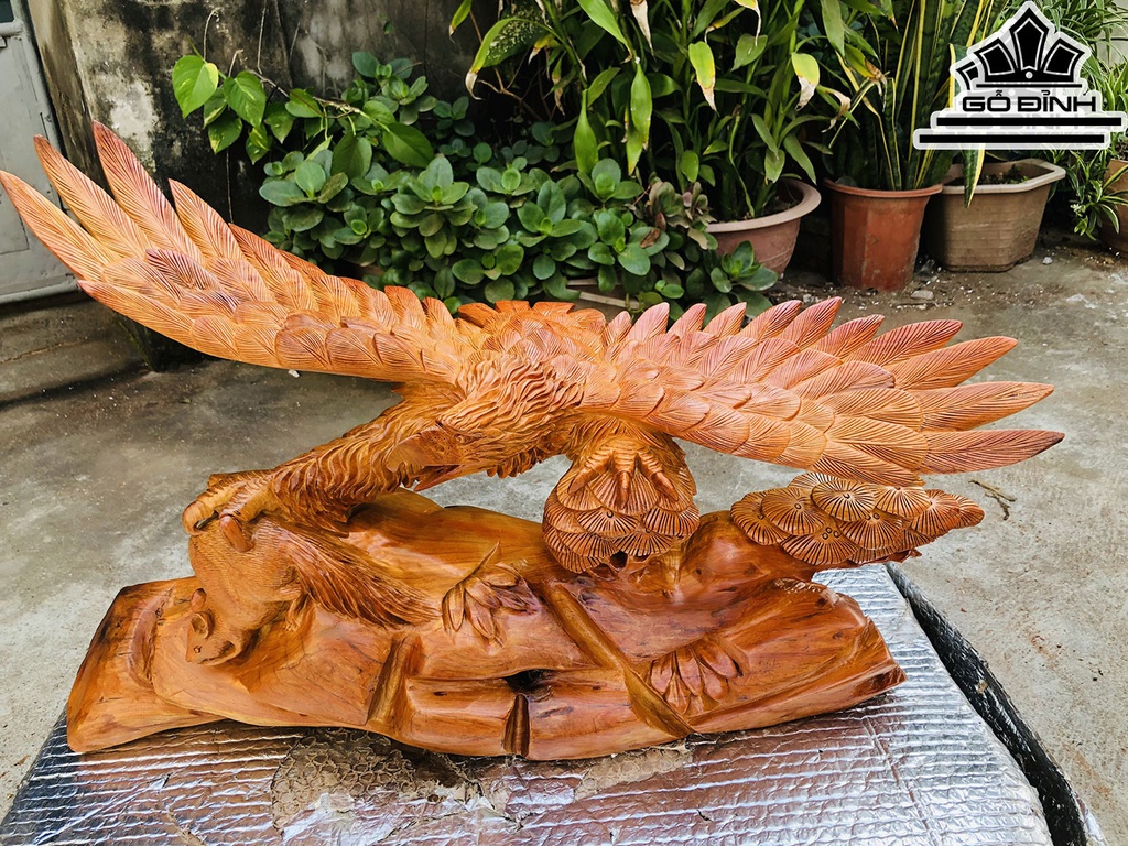 Tượng Đại Bàng Săn Mồi Gỗ Hương Cao 43 Ngang 71 Sâu 26 (cm)