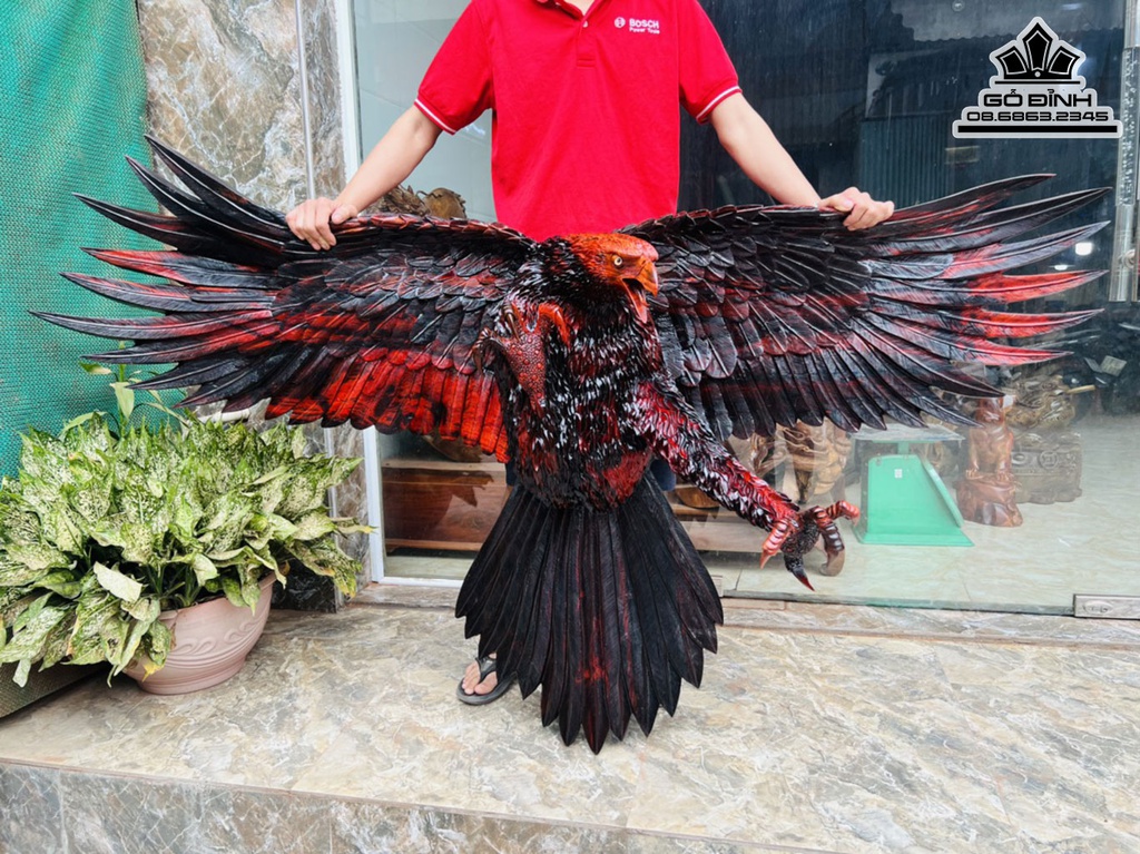Tượng Đại Bàng Săn Mồi Gỗ Trắc Cao 102 Ngang 193 Sâu 72 (cm)