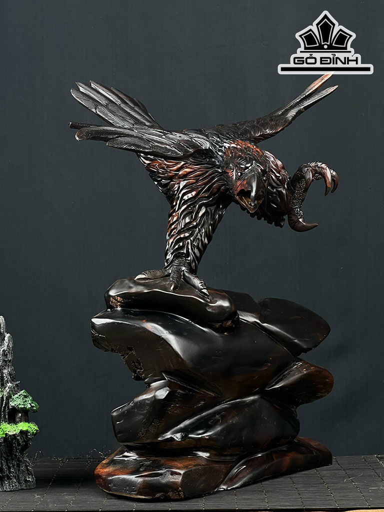 Tượng Đại Bàng Săn Mồi Gỗ Trắc Cao 42 Ngang 39 Sâu 38 (cm)