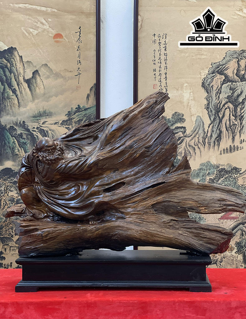 Tượng Đạt Ma Bay Gỗ Bách Xanh Cao 55 Ngang 75 Sâu 18 (cm)
