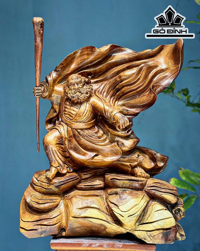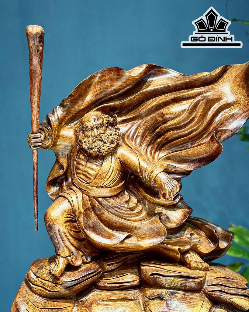 Tượng Đạt Ma Bay Gỗ Hương Cao 58 Ngang 50 Sâu 24 (cm)