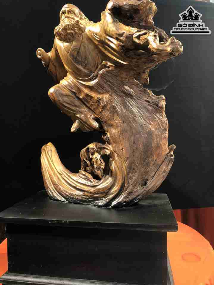 Tượng Đạt Ma Bay Gỗ Lũa Bách Xanh Cao 75 Ngang 40 Sâu 30 (cm)