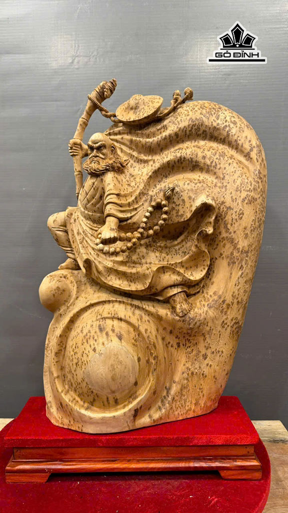 Tượng Đạt Ma Bay Gỗ Nu Ngọc Am Cao Cả Kỷ 80 Ngang 46 Sâu 22 (cm) Riêng Kỷ Cao 10