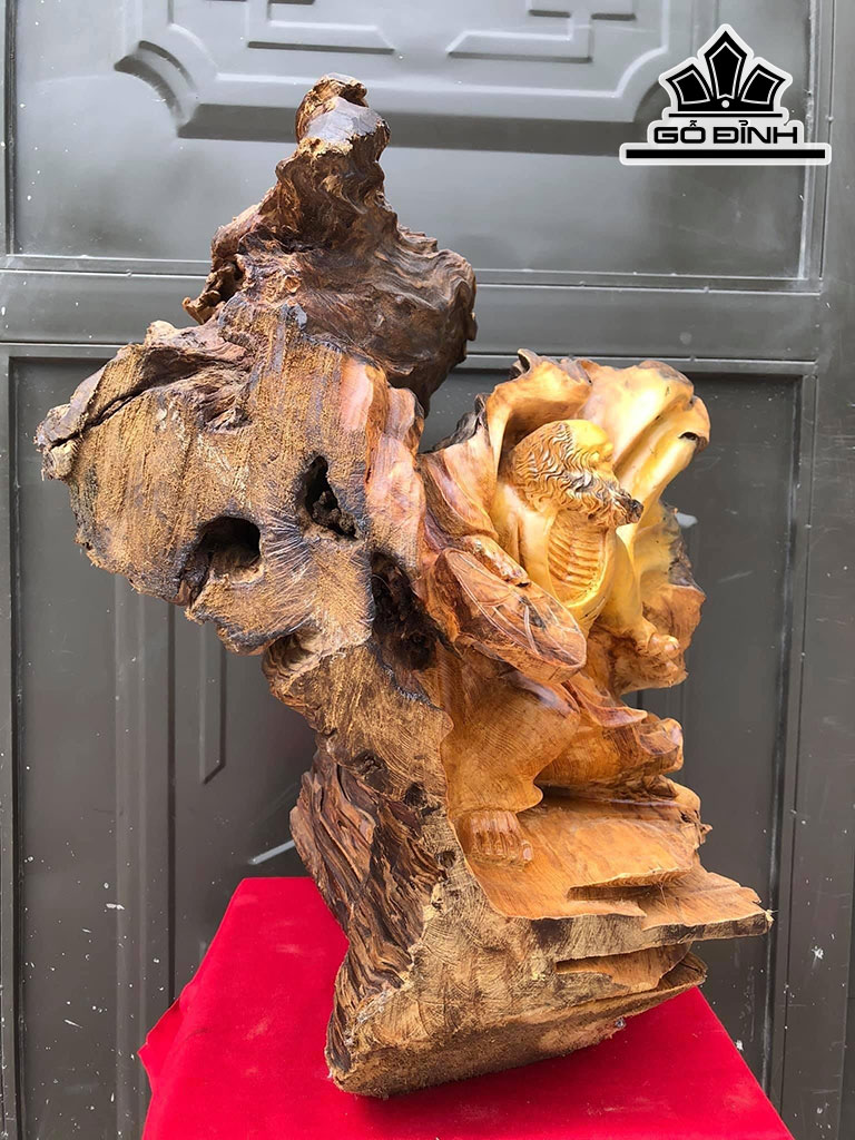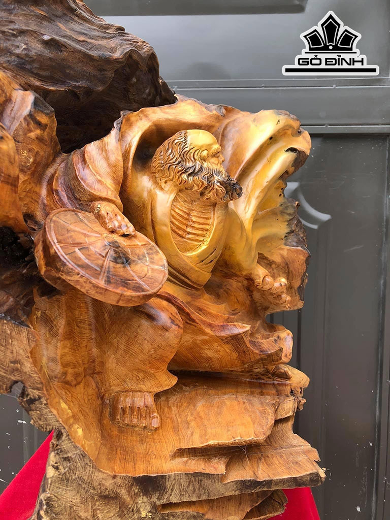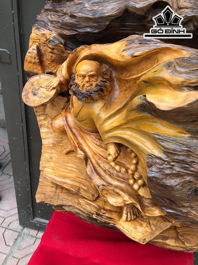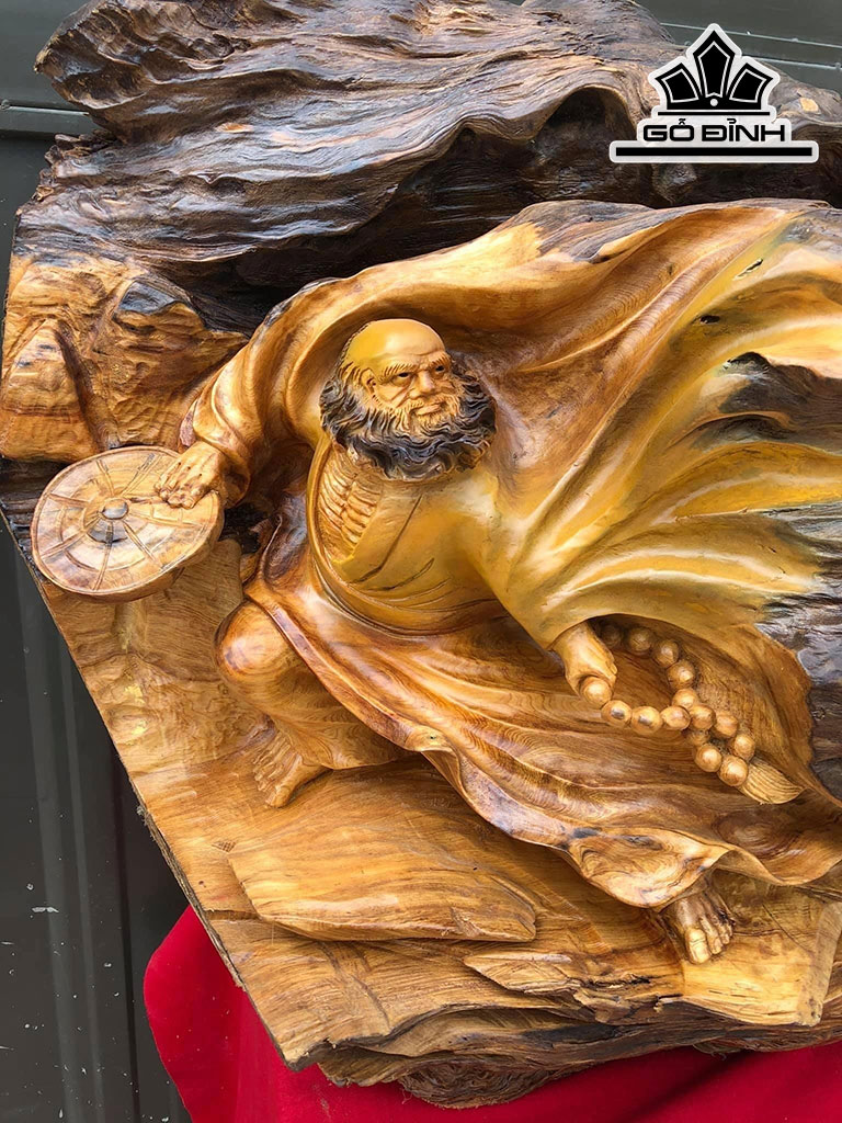 Tượng Đạt Ma Bay Gỗ Pơ Mu Cao 63 Ngang 61 Sâu 42 (cm)
