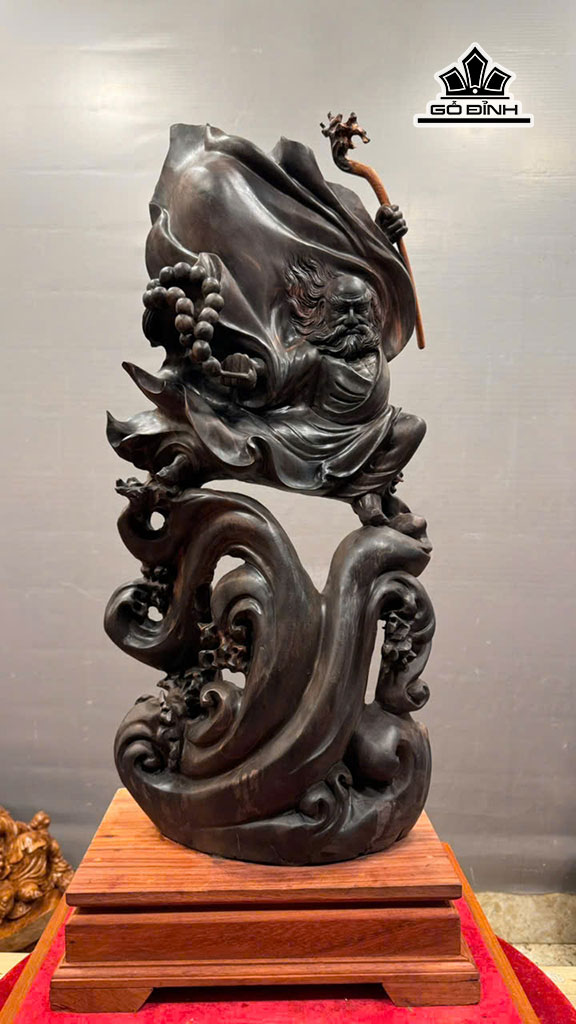 Tượng Đạt Ma Bay Gỗ Trắc Cao Cả Kỷ 73 Ngang 30 Sâu 19 - Riêng Kỷ Cao 10 (cm)