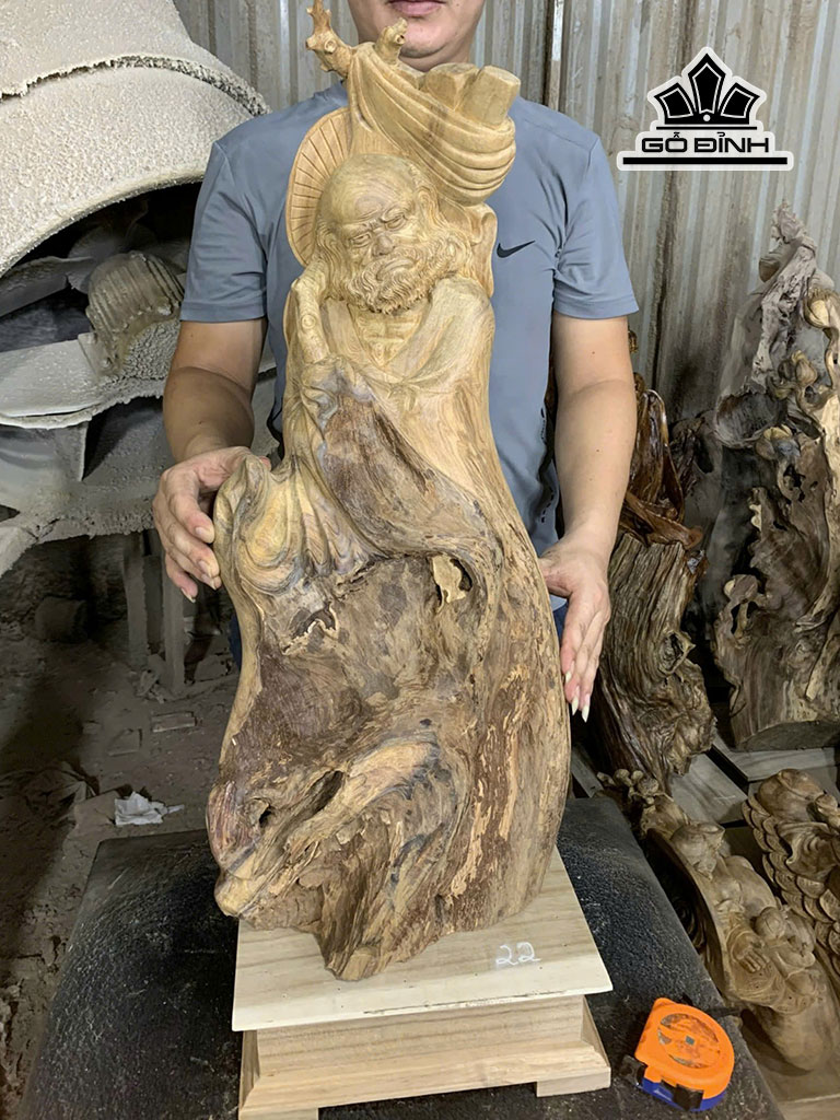 Tượng Đạt Ma Giáo Hóa Gỗ Bách Xanh Cao 75 - Cả Kỷ Cao 85 Ngang 33 Sâu 26 (cm)