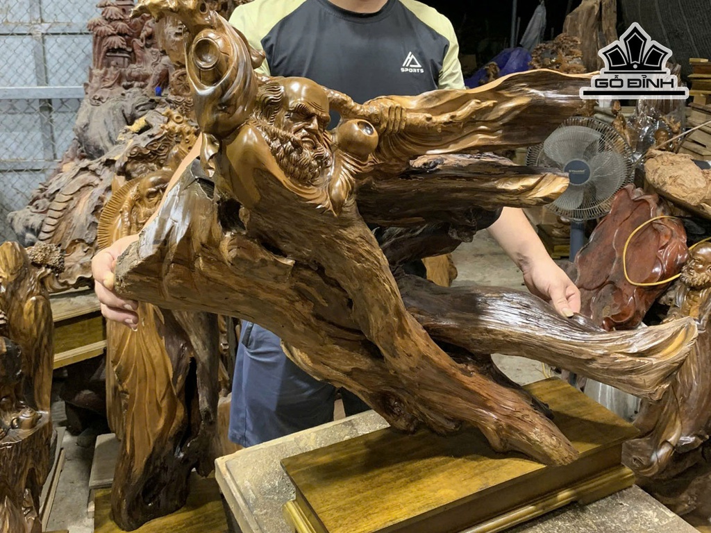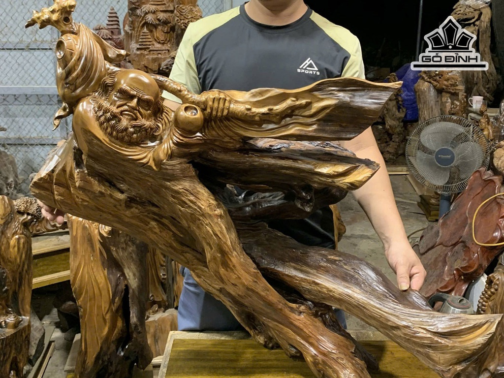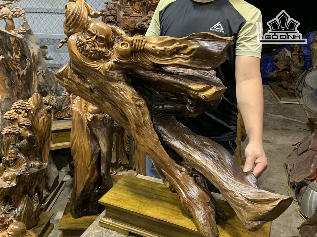 Tượng Đạt Ma Giáo Hóa Gỗ Bách Xanh Cao 78 - Cả Kỷ Cao 88 Ngang 90 Sâu 35 (cm)