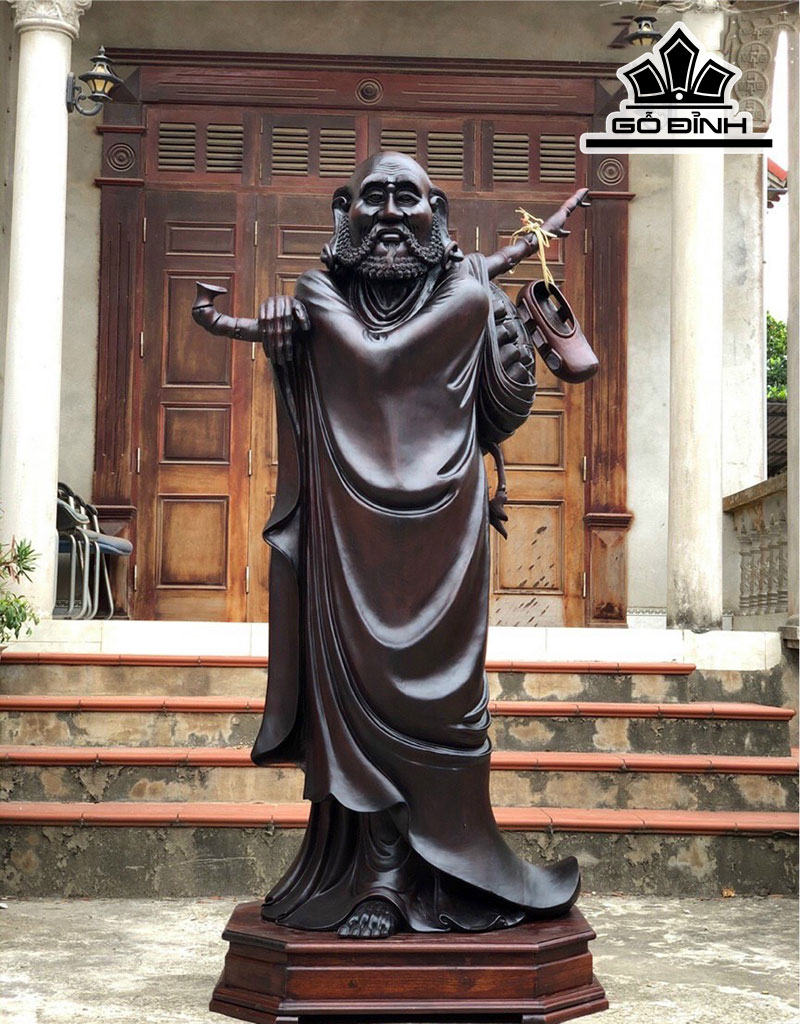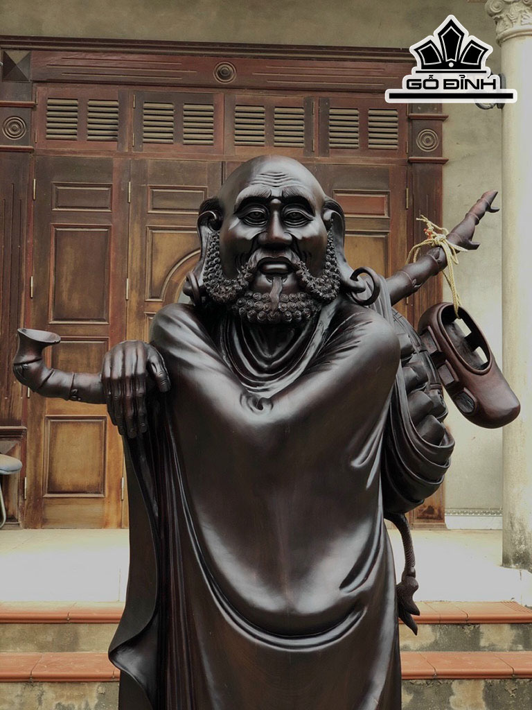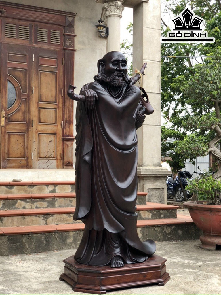 Tượng Đạt Ma Giáo Hóa Gỗ Gụ Cao 197 Ngang 115 Sâu 60 (cm)