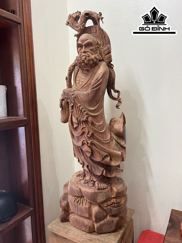 Tượng Đạt Ma Giáo Hóa Gỗ Hương Cao 120 Ngang 40 Sâu 25 (cm)