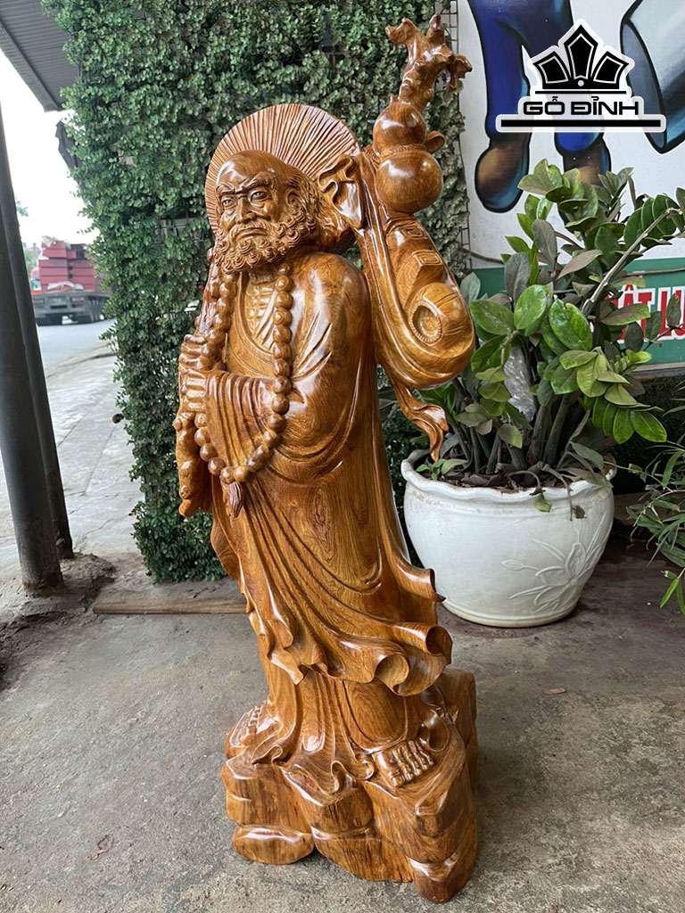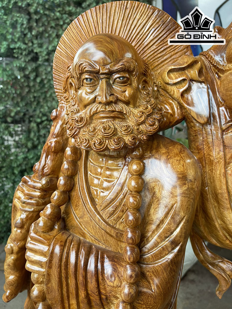 Tượng Đạt Ma Giáo Hóa Gỗ Hương Cao 86 Ngang 40 Sâu 27 (cm)