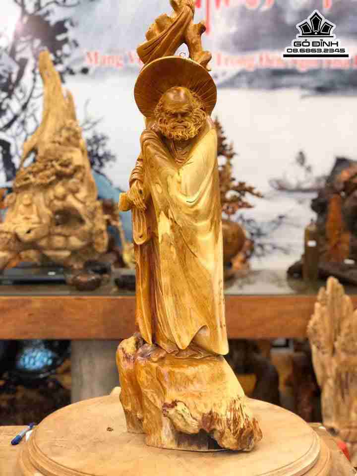 Tượng Đạt Ma Giáo Hóa Gỗ Hương Cao 90 Ngang 28 Sâu 28 (cm)