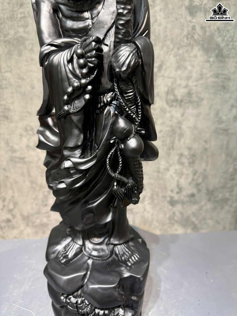 Tượng Đạt Ma Giáo Hóa Gỗ Mun Sừng Cao 83 Ngang 23 Sâu 20 (cm)