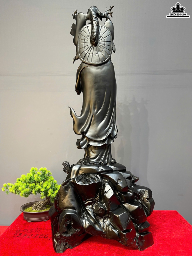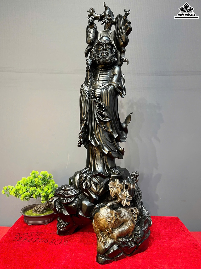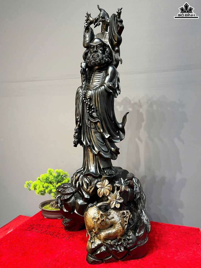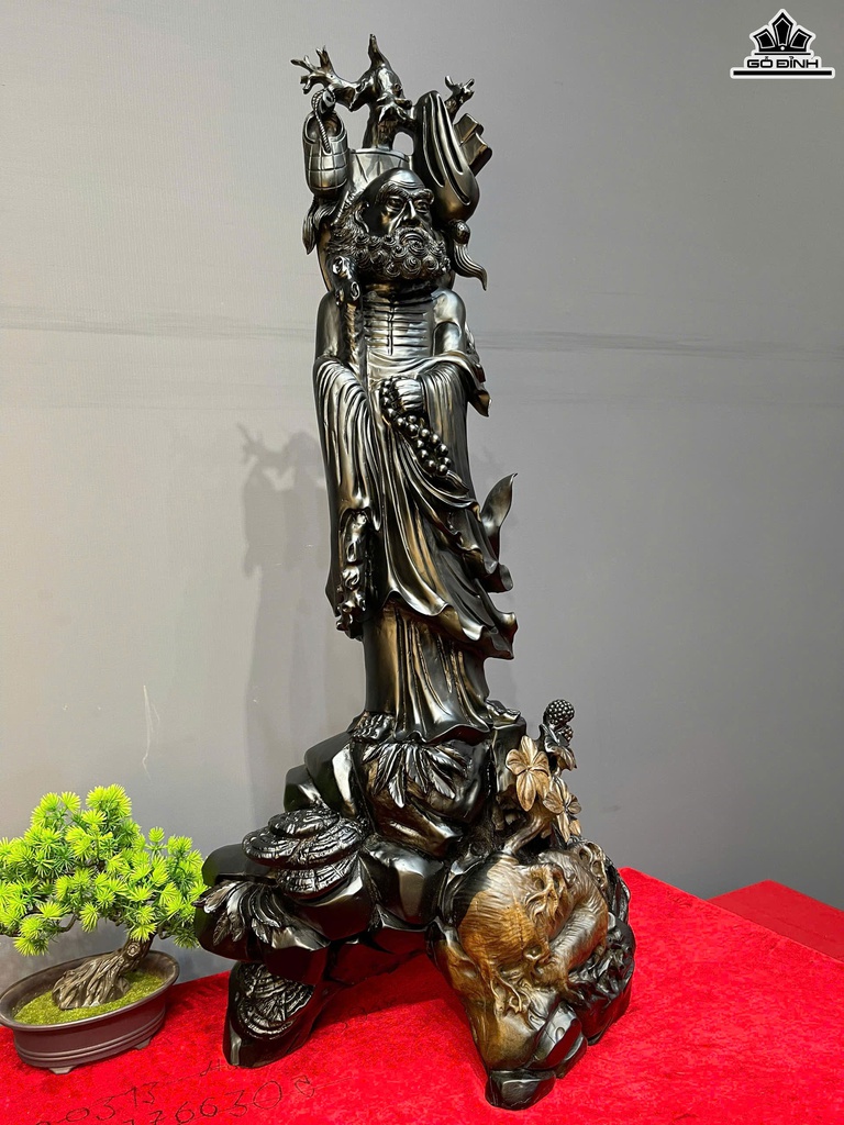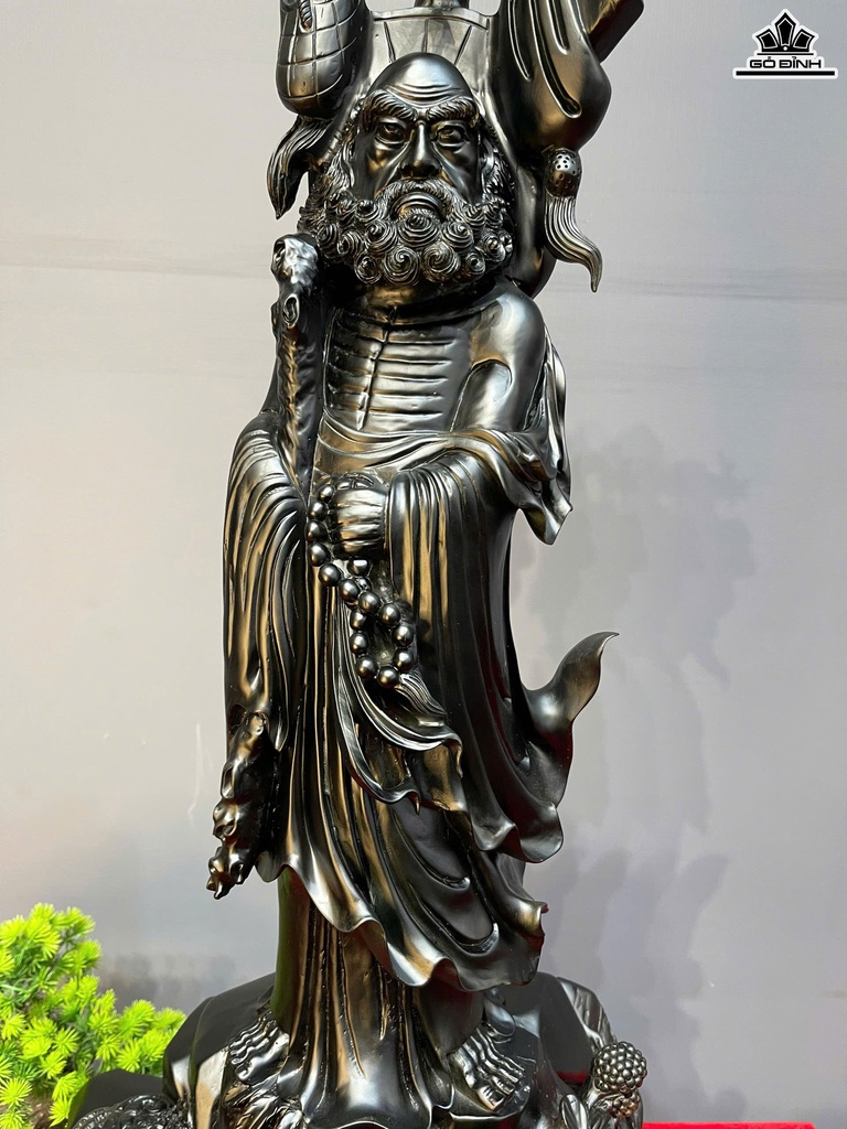Tượng Đạt Ma Giáo Hóa Gỗ Mun Sừng Cao 85 Ngang 37 Sâu 28 (cm)