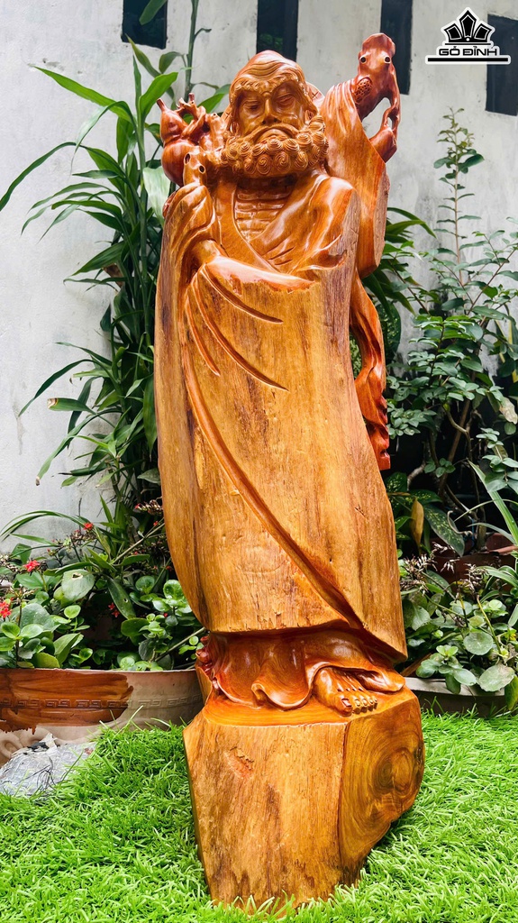 Tượng Đạt Ma Giáo Hóa Gỗ Ngọc Am Cao 79 Ngang 28 Sâu 28 (cm)