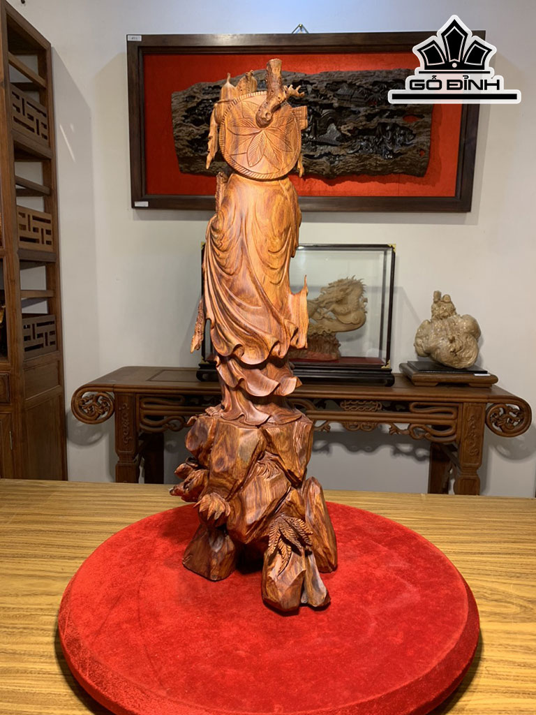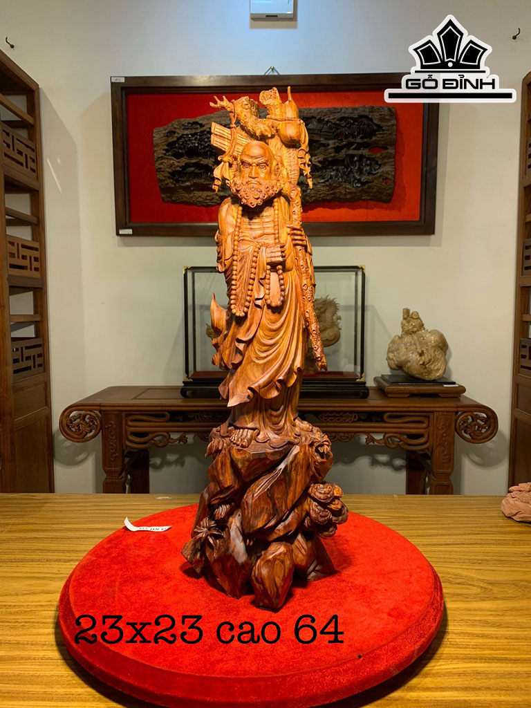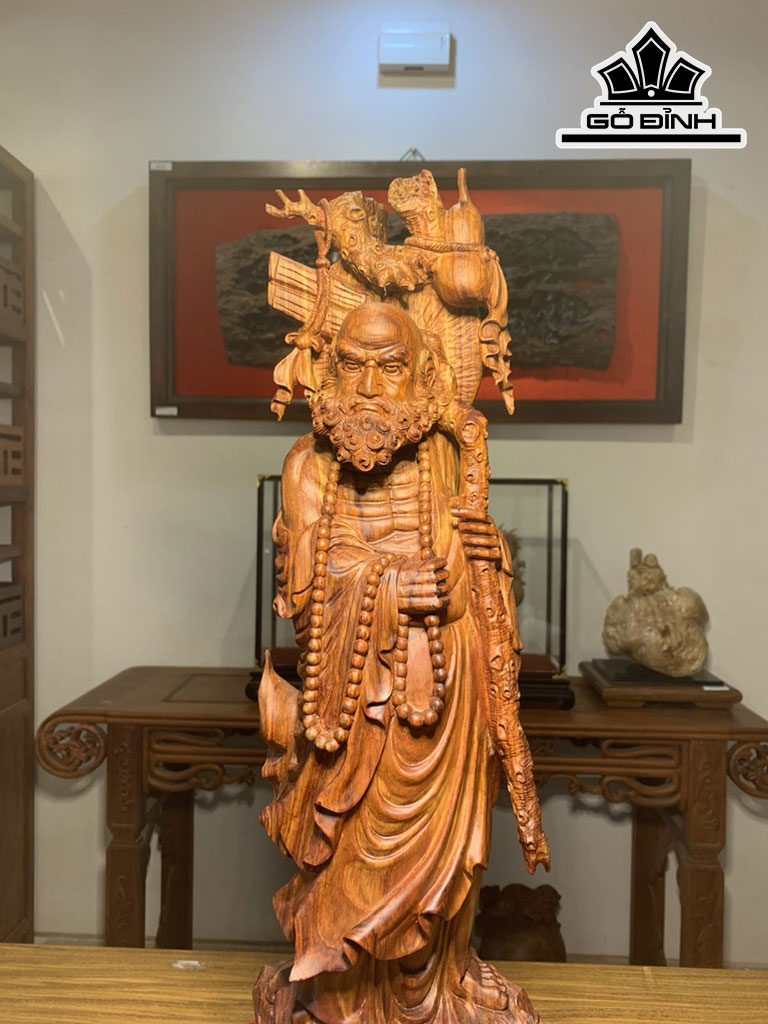 Tượng Đạt Ma Giáo Hóa Gỗ Sưa Cao 64 Ngang 23 Sâu 23 (cm)