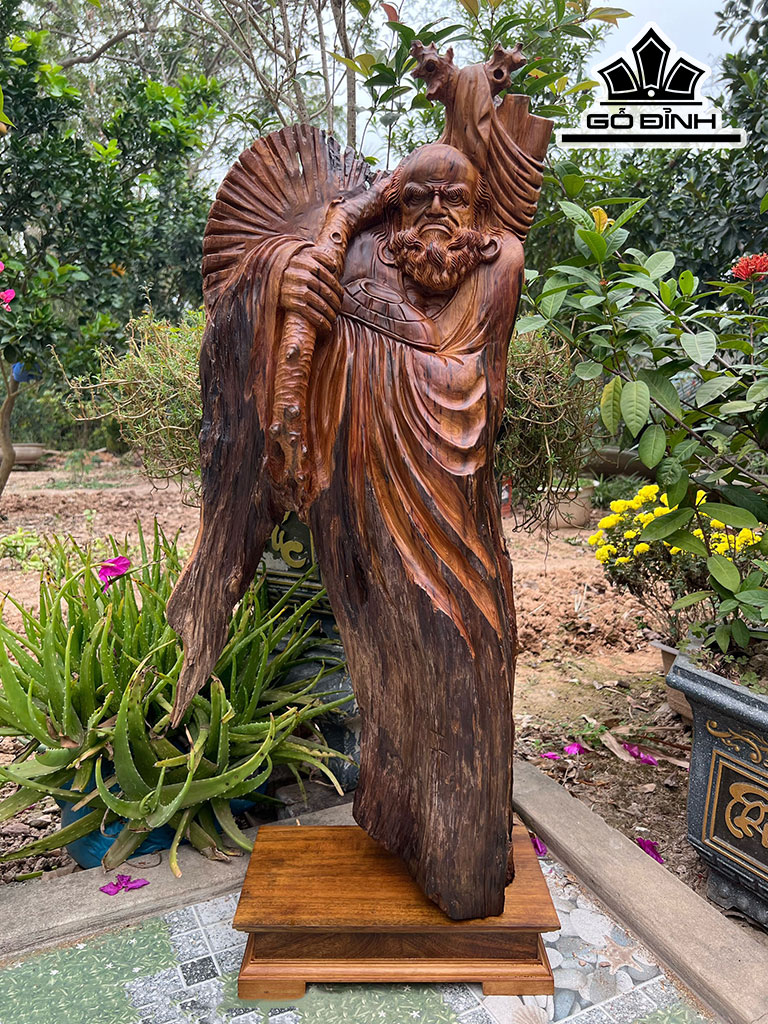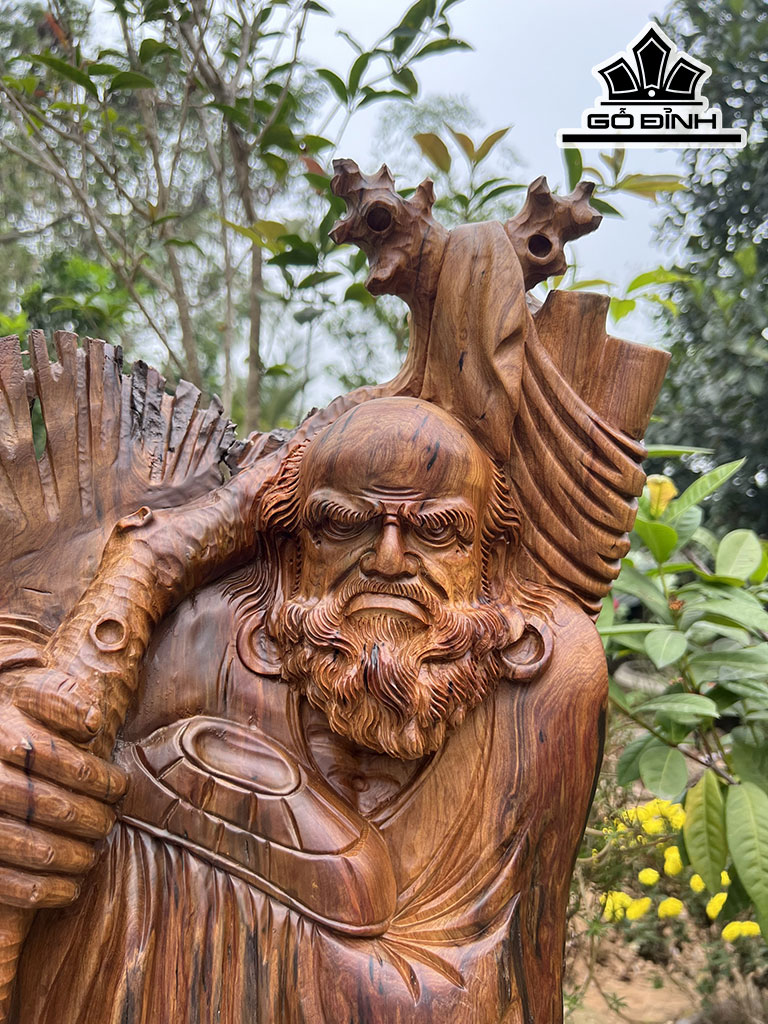 Tượng Đạt Ma Gỗ Bách Xanh Cao 91 Ngang 31 Sâu 16 (cm)